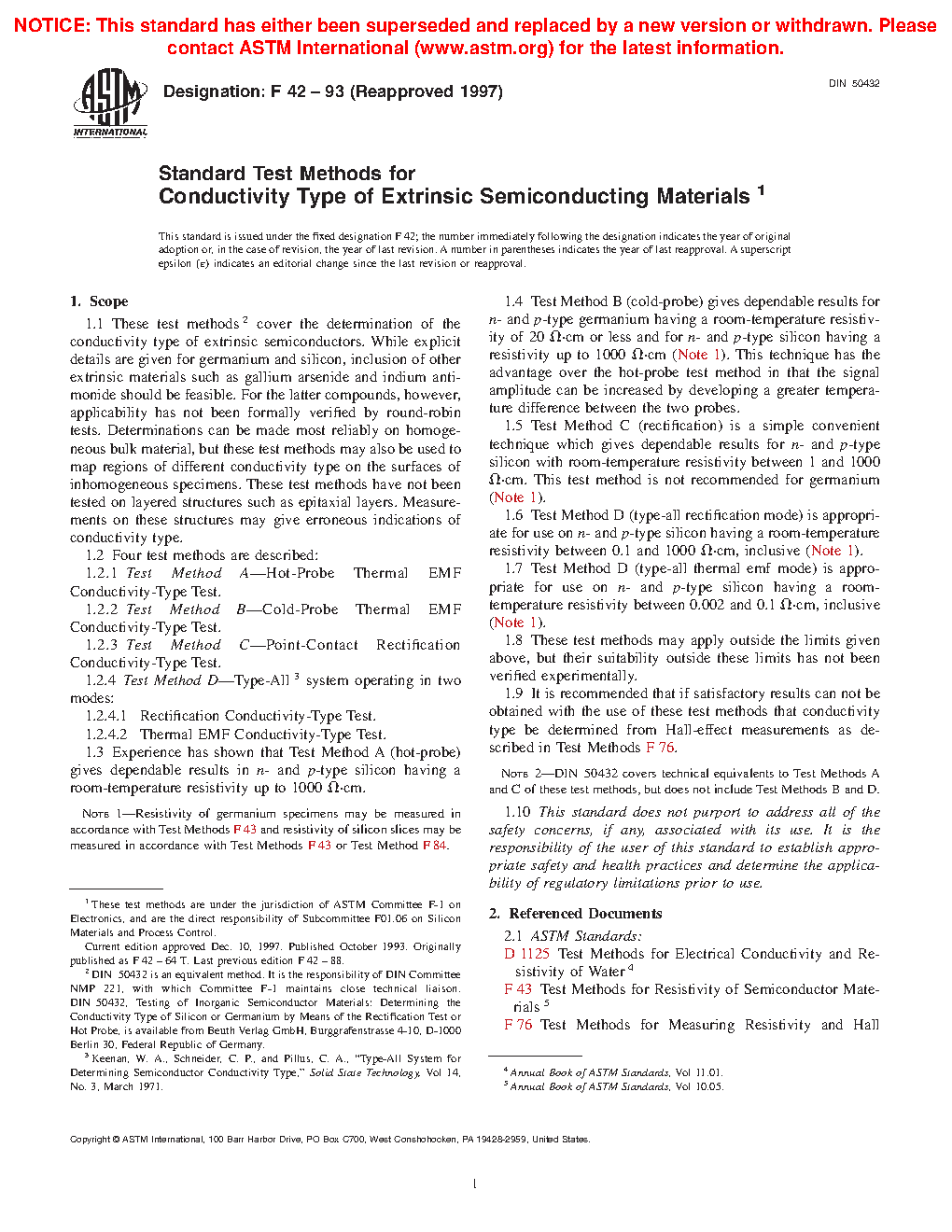 1.6 Test Method D (type-all rectification mode) is appropriate for use on n- and p-type silicon having a room-temperature resistivity between 0.1 and 1000 Ω ·cm, inclusive (Note 1).