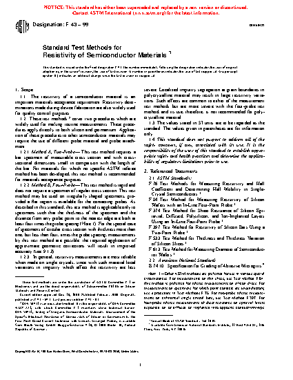 1.1 The resistivity of a semiconductor material is an important materials acceptance requirement. Resistivity determinations made during device fabrication are also widely used for quality control purposes.