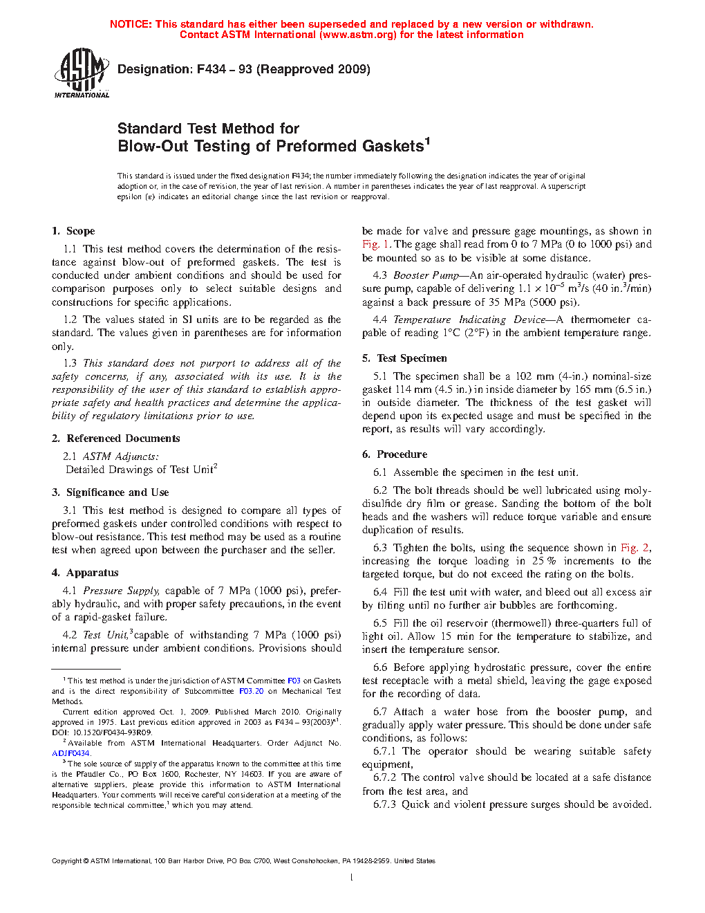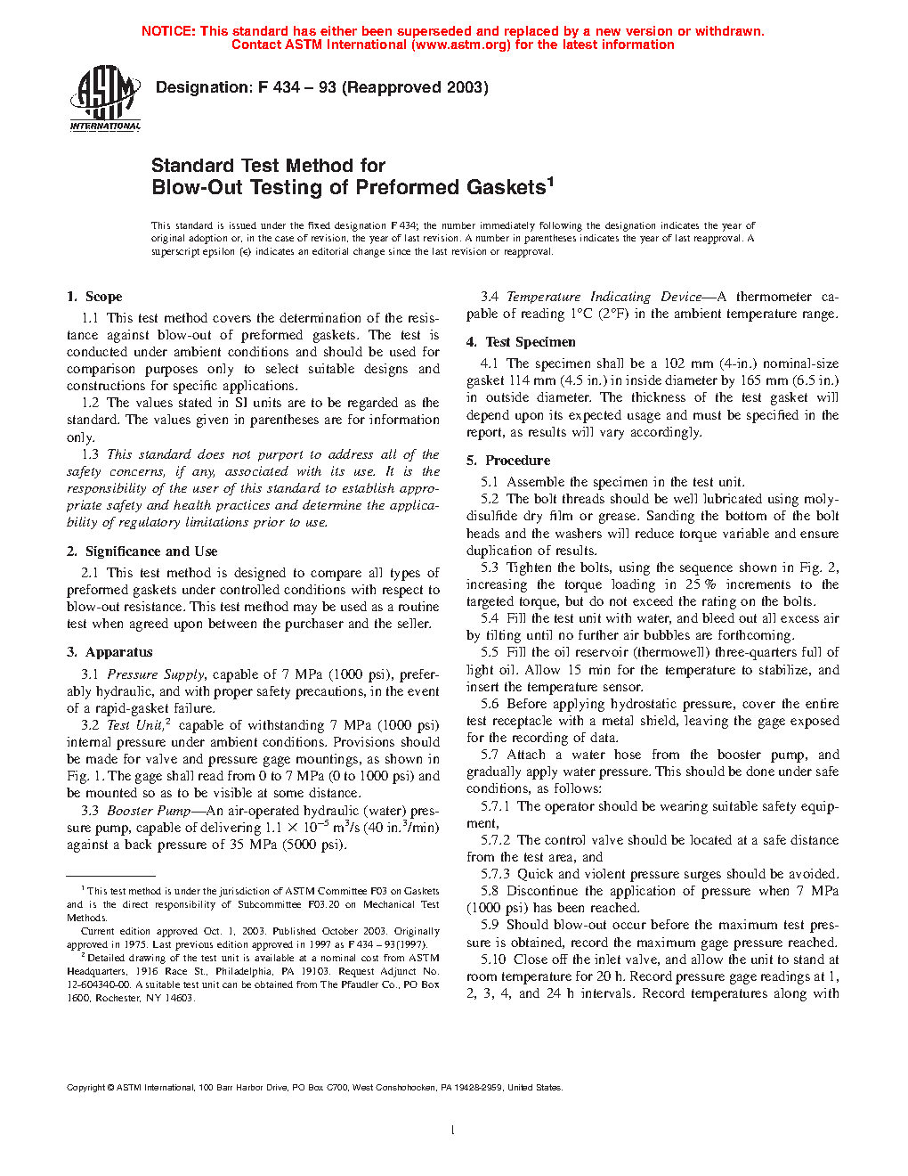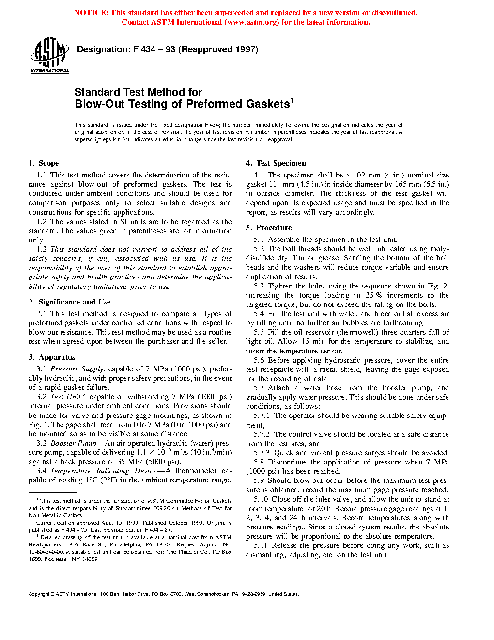 1.1 This test method covers the determination of the resistance against blow-out of preformed gaskets. The test is conducted under ambient conditions and should be used for comparison purposes only to select suitable designs and constructions for specific applications.