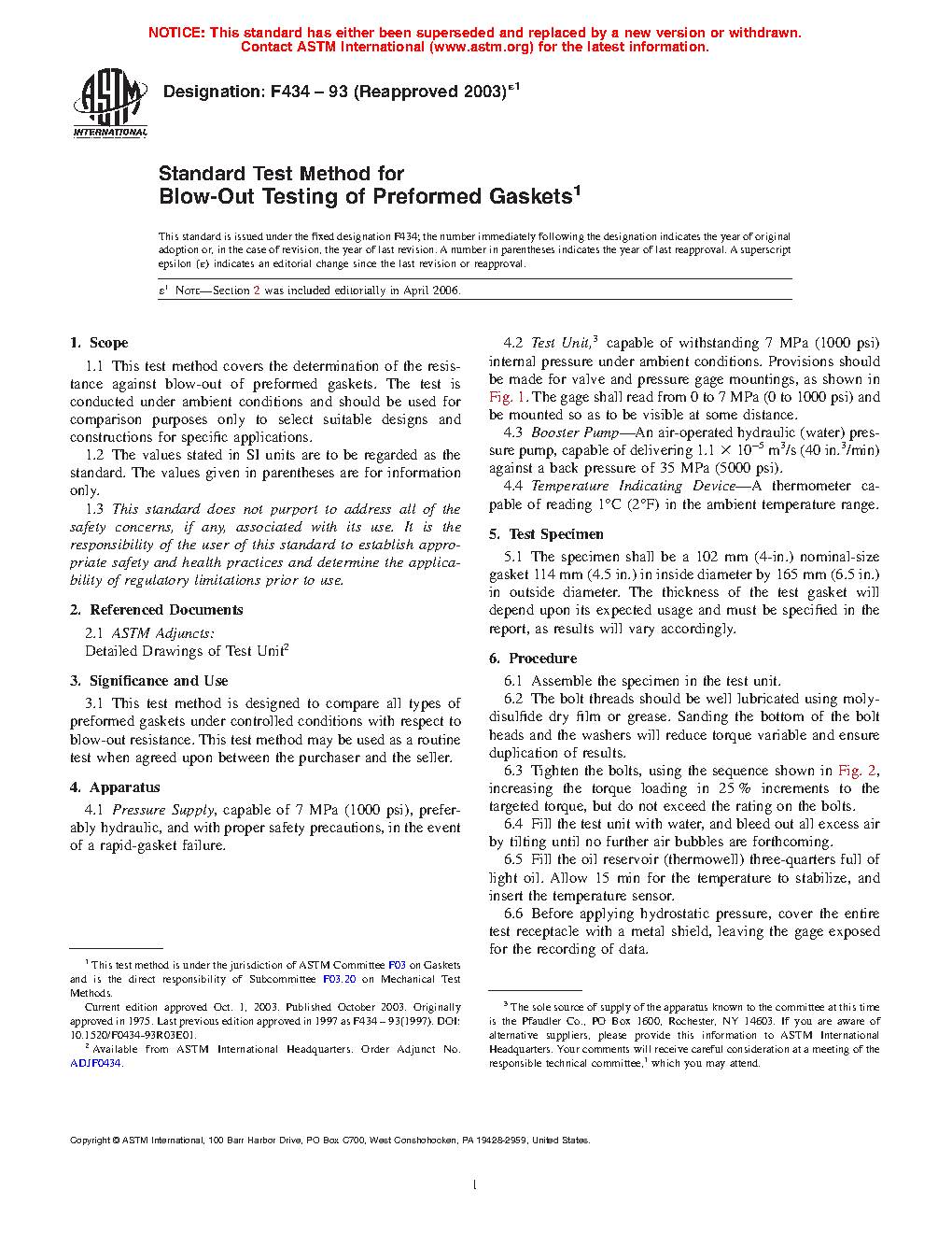 3.1 This test method is designed to compare all types of preformed gaskets under controlled conditions with respect to blow-out resistance. This test method may be used as a routine test when agreed upon between the purchaser and the seller.