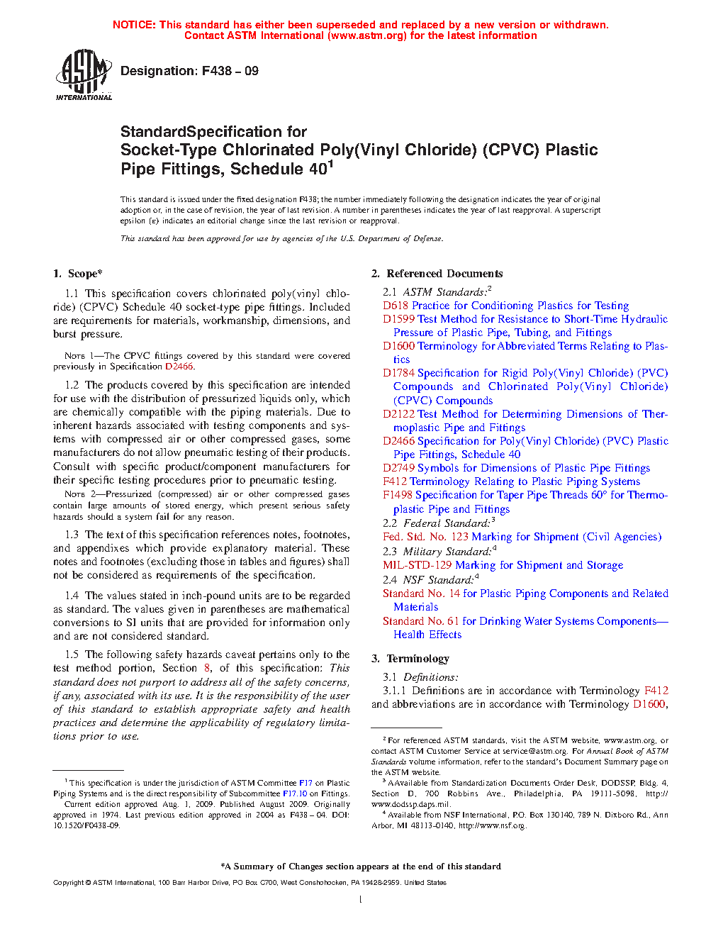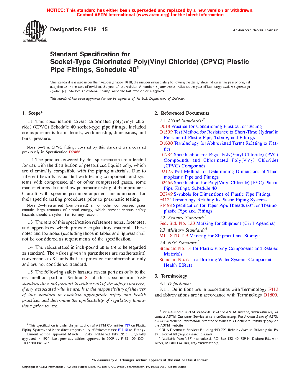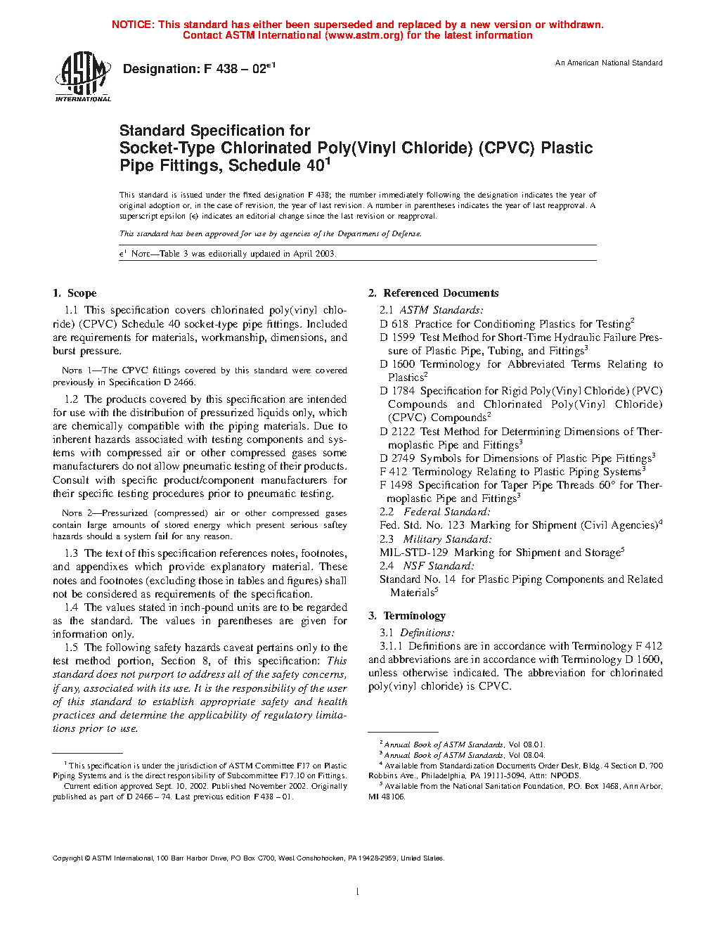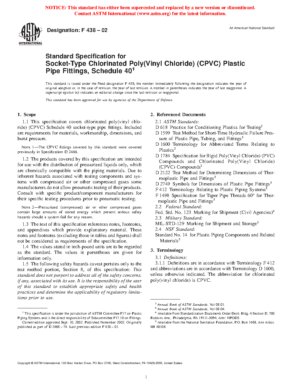 Note 1: The CPVC fittings covered by this standard were covered previously in Specification D2466.