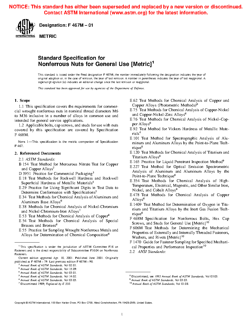 Note 1: This specification is the metric companion of Specification F467.