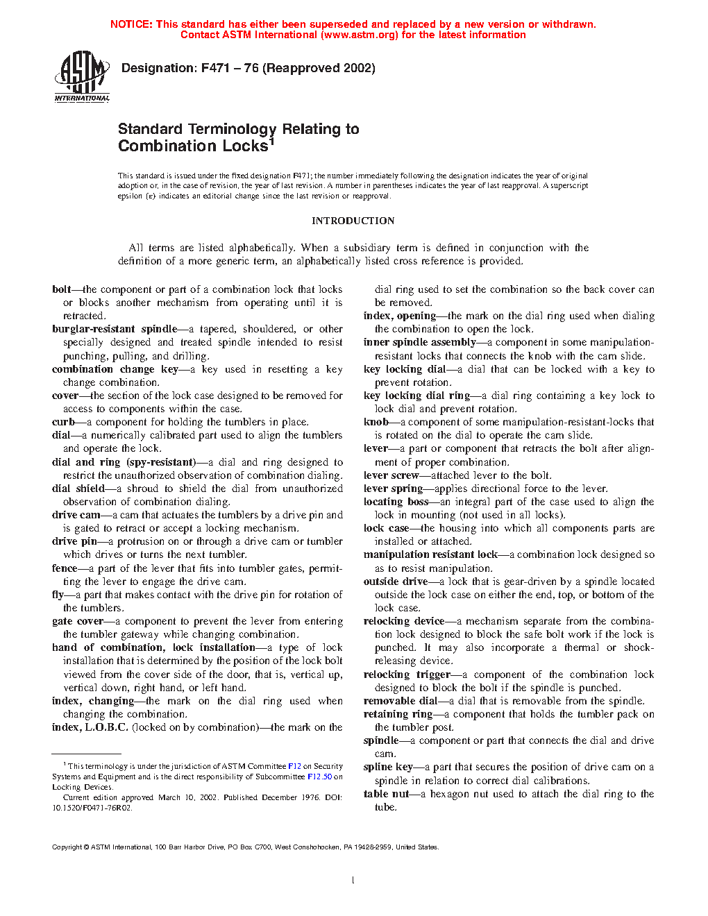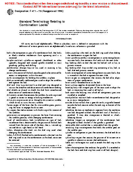 Standard Terminology Relating to Combination Locks