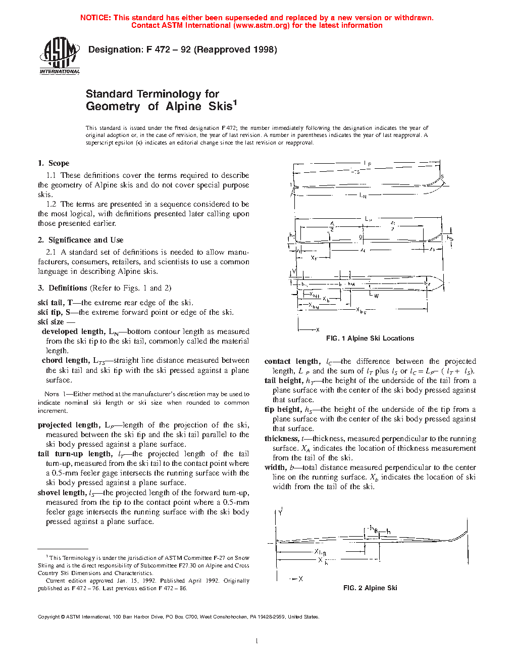 2.1 A standard set of definitions is needed to allow manufacturers, consumers, retailers, and scientists to use a common language in describing Alpine skis.