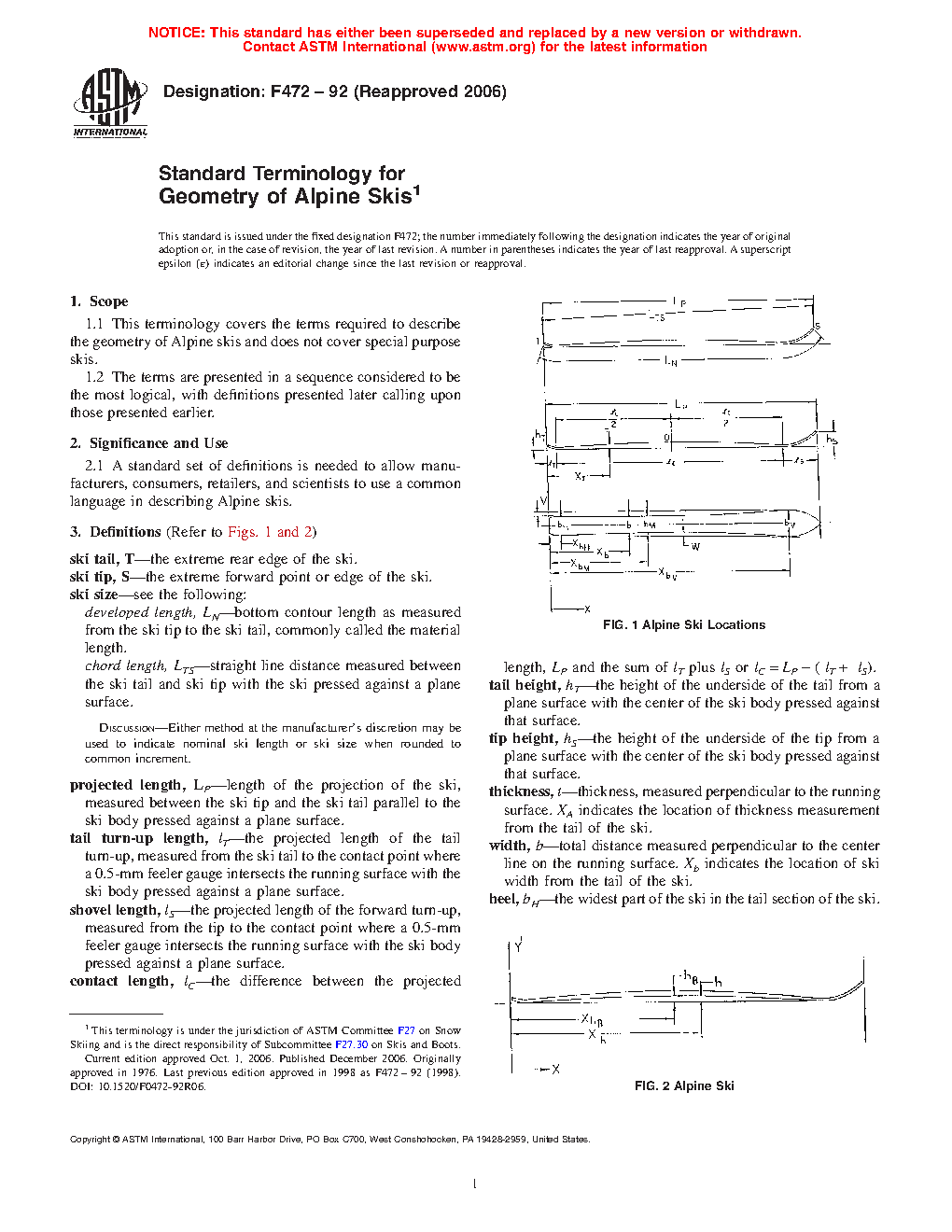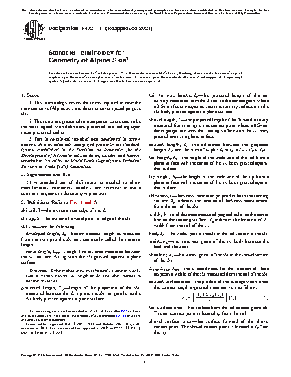 1.1 These definitions cover the terms required to describe the geometry of Alpine skis and do not cover special purpose skis.