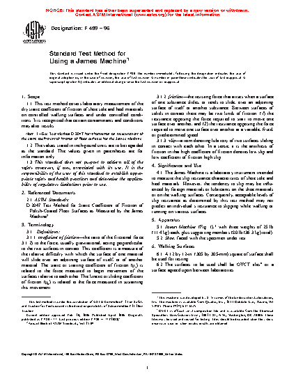 Note-See Test Method D2047 for information on measurement of the static coefficient of friction of floor surfaces for the James Machine.1.2 The values stated in inch-pound units are to be regarded as the standard. The values given in parentheses are for information only.