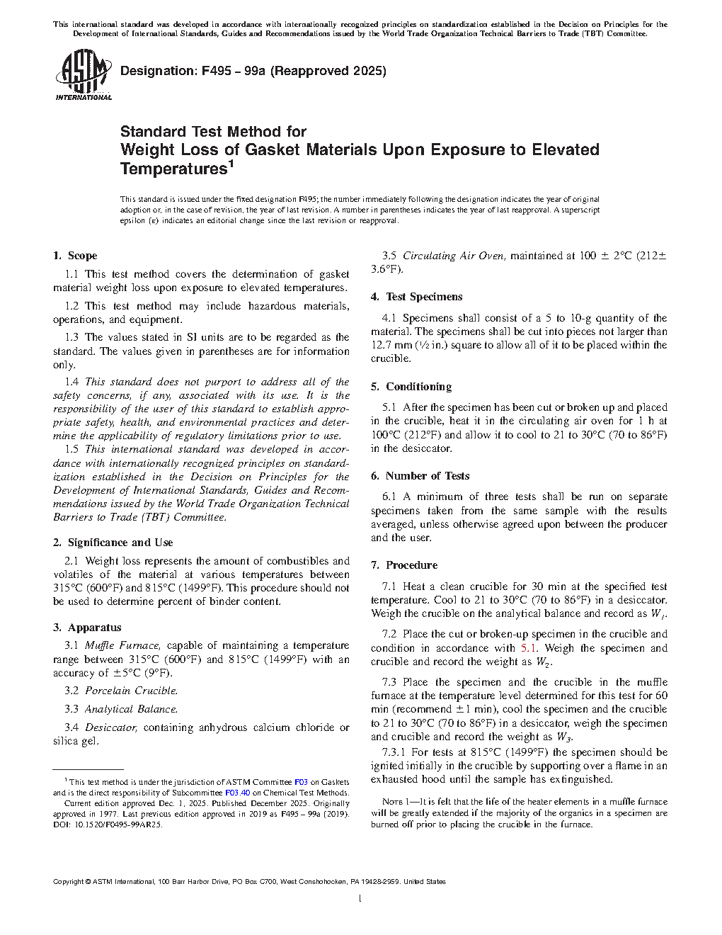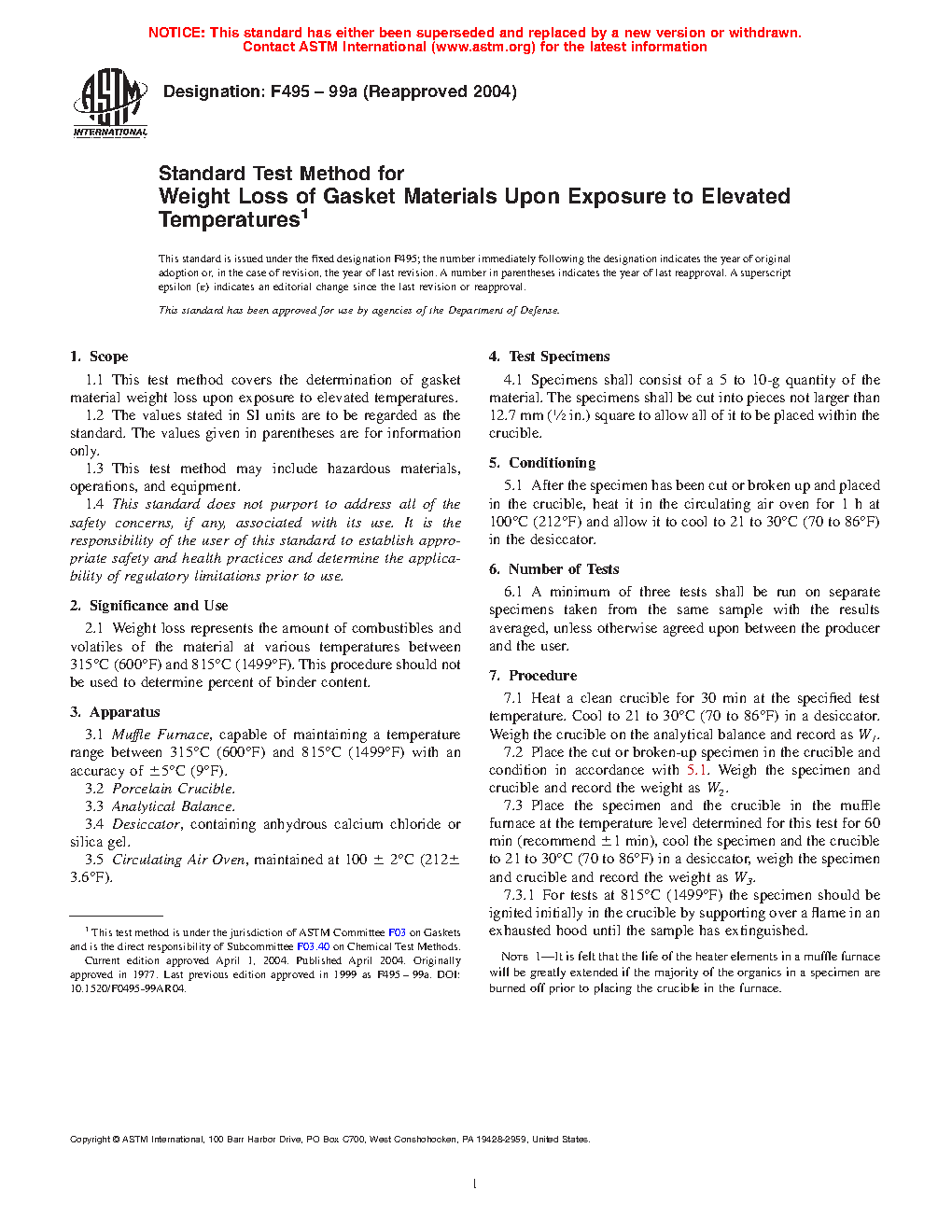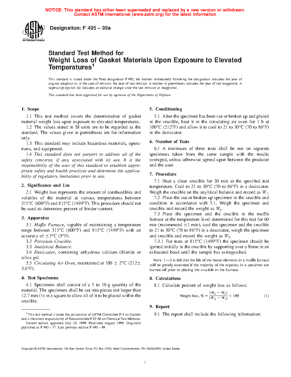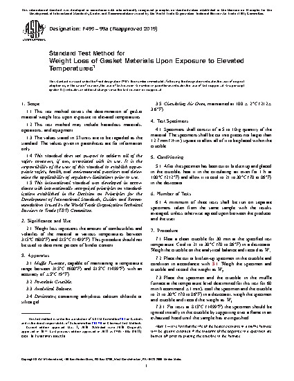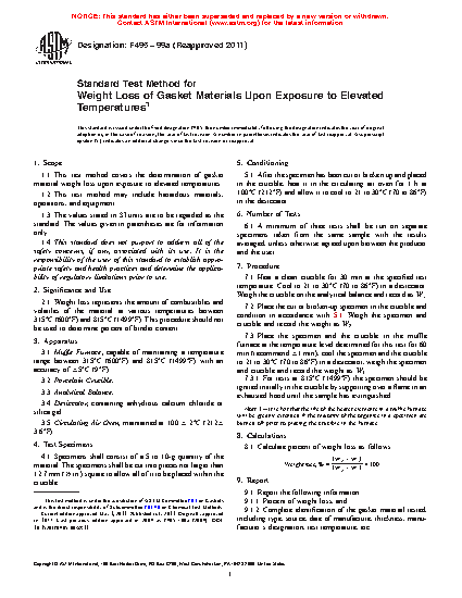 1.1 This test method covers the determination of gasket material weight loss upon exposure to elevated temperatures.