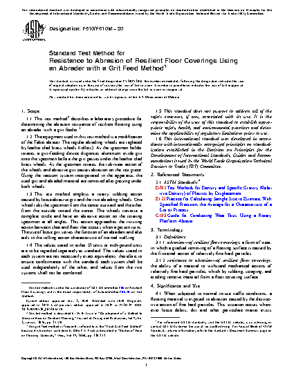 1.1 This test method2 describes a laboratory procedure for determining the abrasion resistance of resilient flooring using an abrader with a grit feeder.3