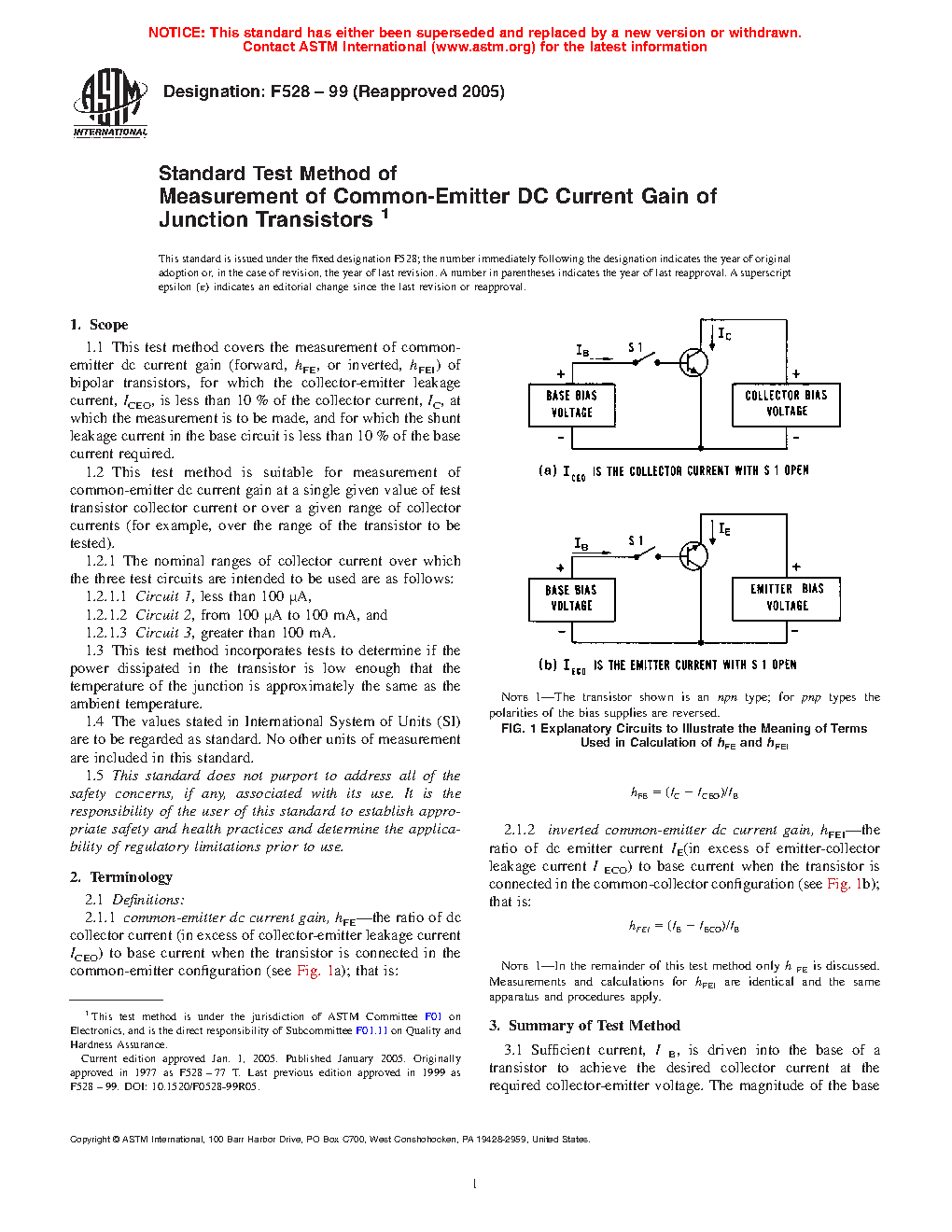 1.2 This test method is suitable for measurement of common-emitter d-c current gain at a single given value of test transistor collector current or over a given range of collector currents (for example, over the range of the transistor to be tested).