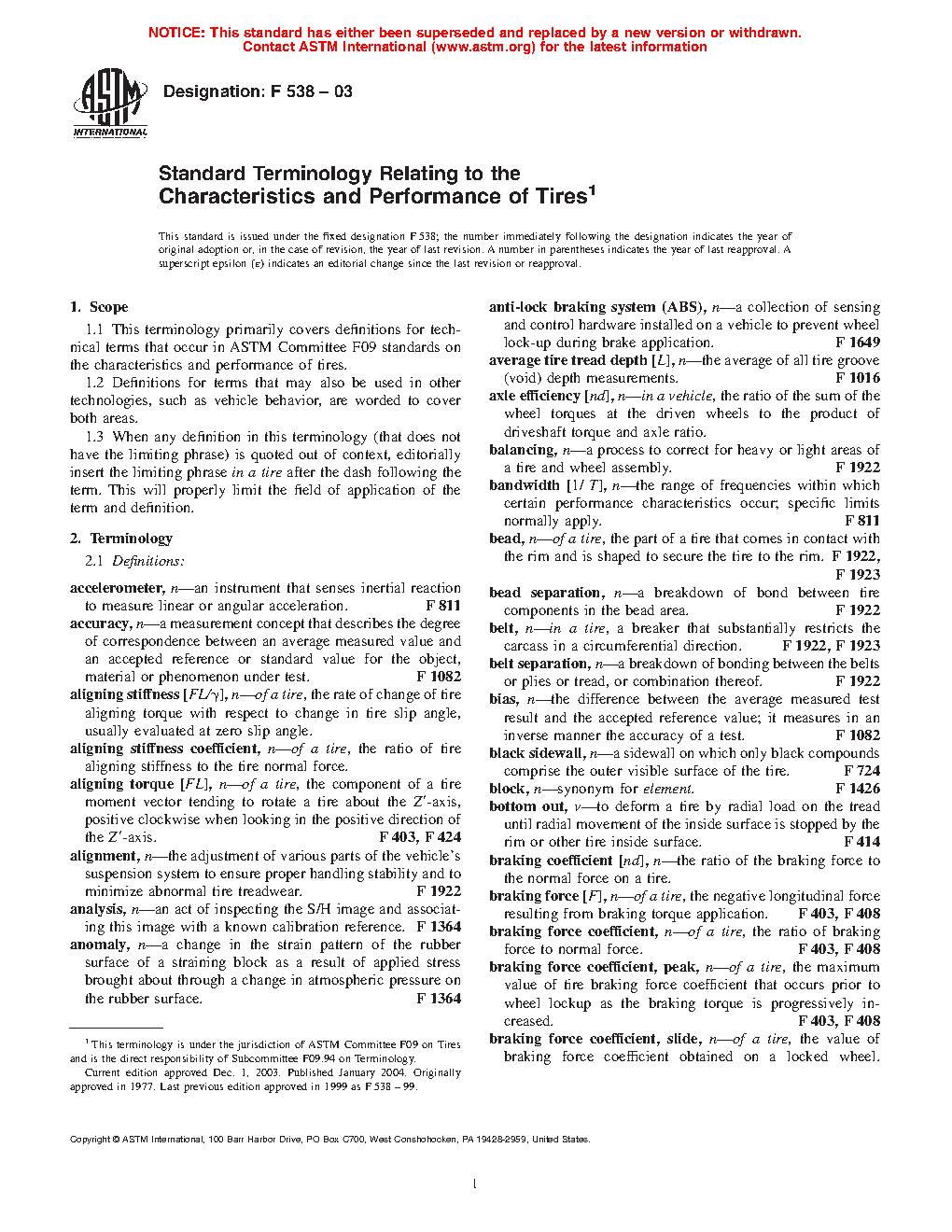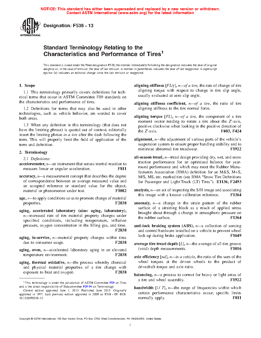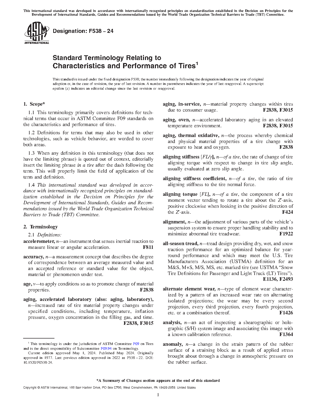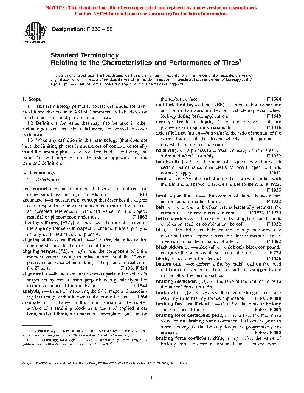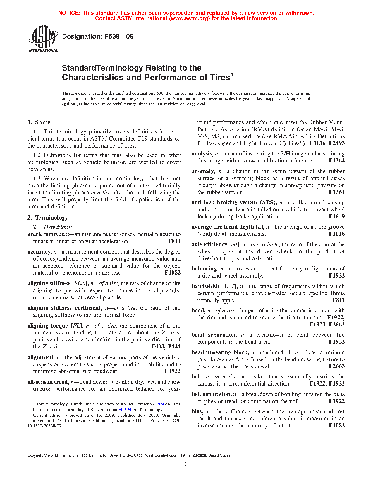 Standard Terminology Relating to the Characteristics and Performance of Tires
