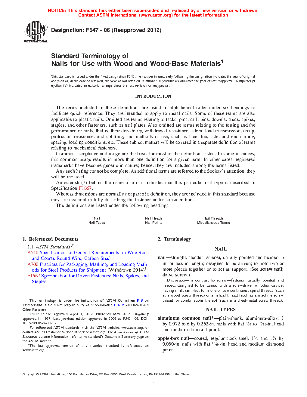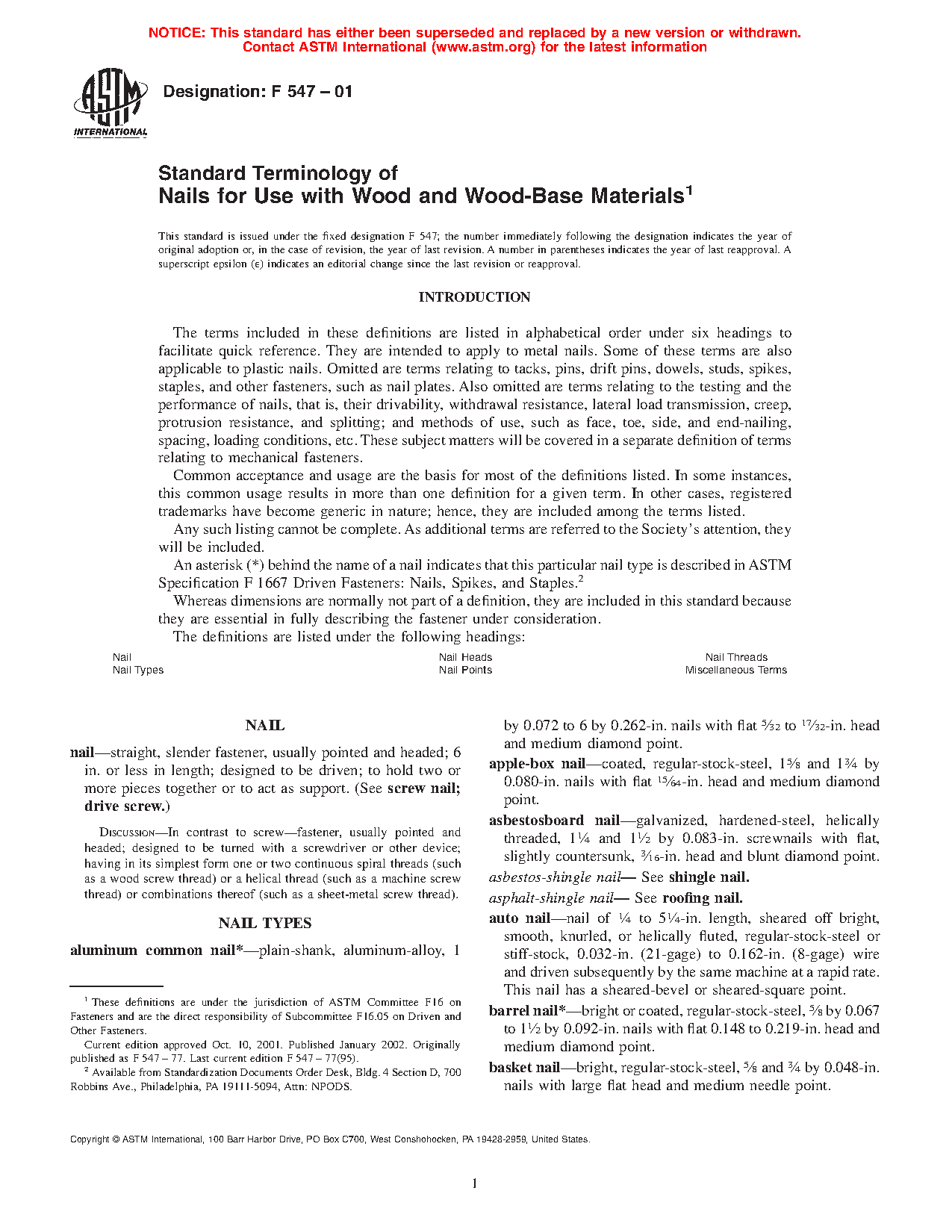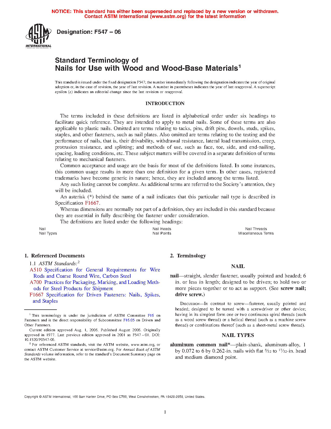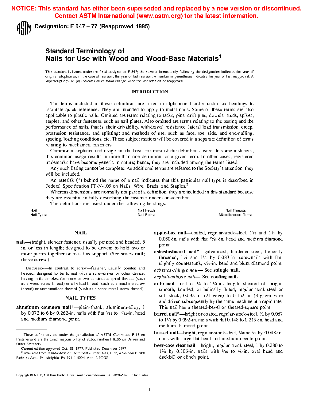 Standard Terminology of Nails for Use with Wood and Wood-Base Materials