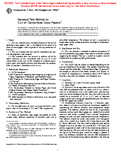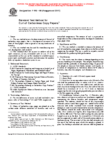 1.1 This test method covers the determination of the curl of carbonless copy papers, that is, the degree of curvature of a sheet of these papers when exposed to varying conditions of humidity.