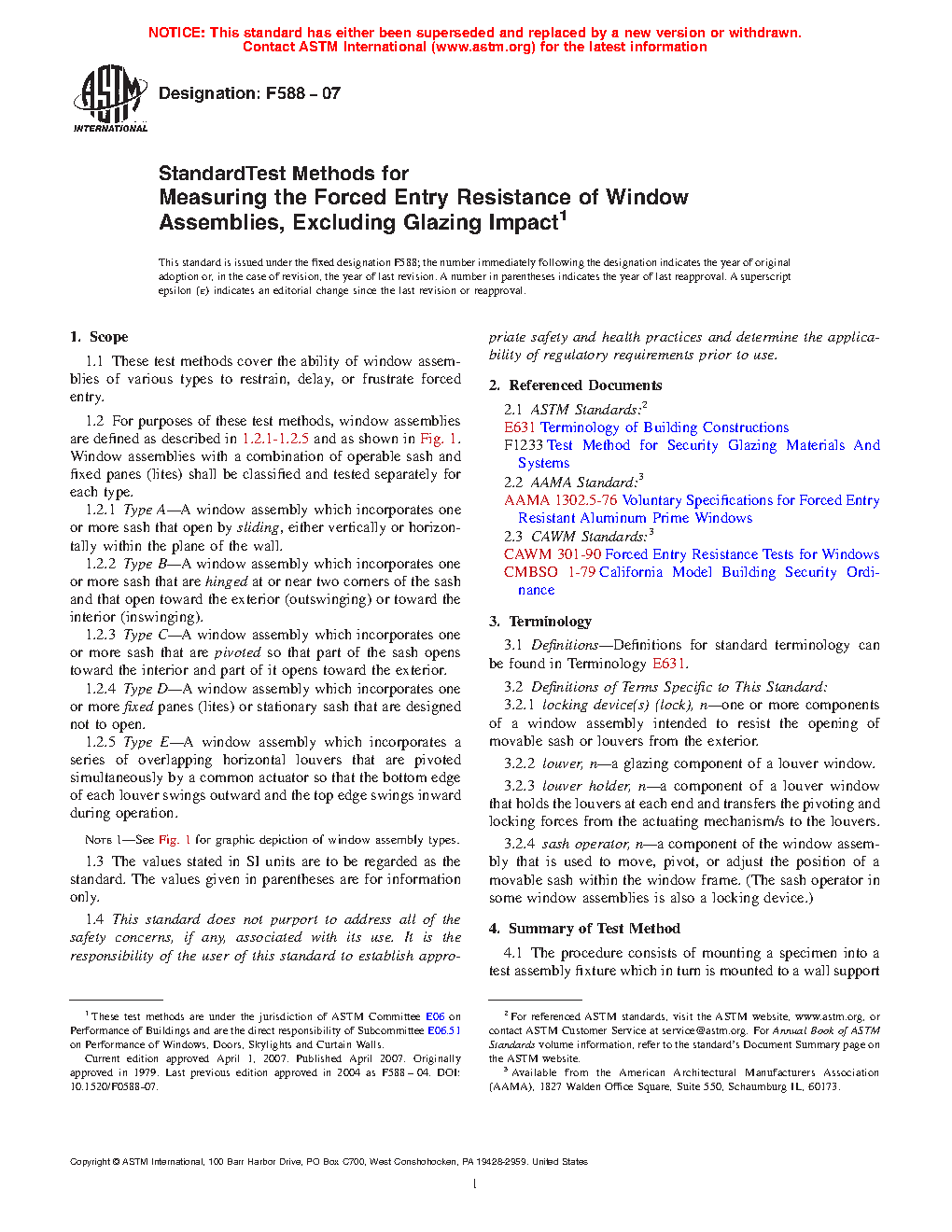 1.2 For purposes of these test methods, window assemblies are defined as described in 1.2.1 – 1.2.5 and as shown in Fig. 1. Window assemblies with a combination of operable sash and fixed panes (lites) shall be classified and tested separately for each type.