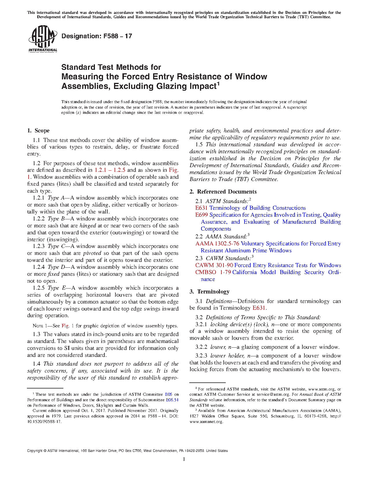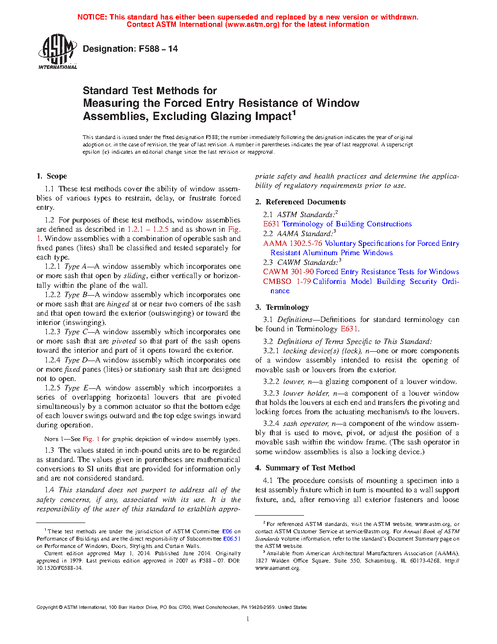 5.2 Entry through a window assembly can be accomplished by impacting the glazing materials. This method does not evaluate glazing materials for breakage. Other standards must be used to evaluate forced entry by impacting the glazing.
