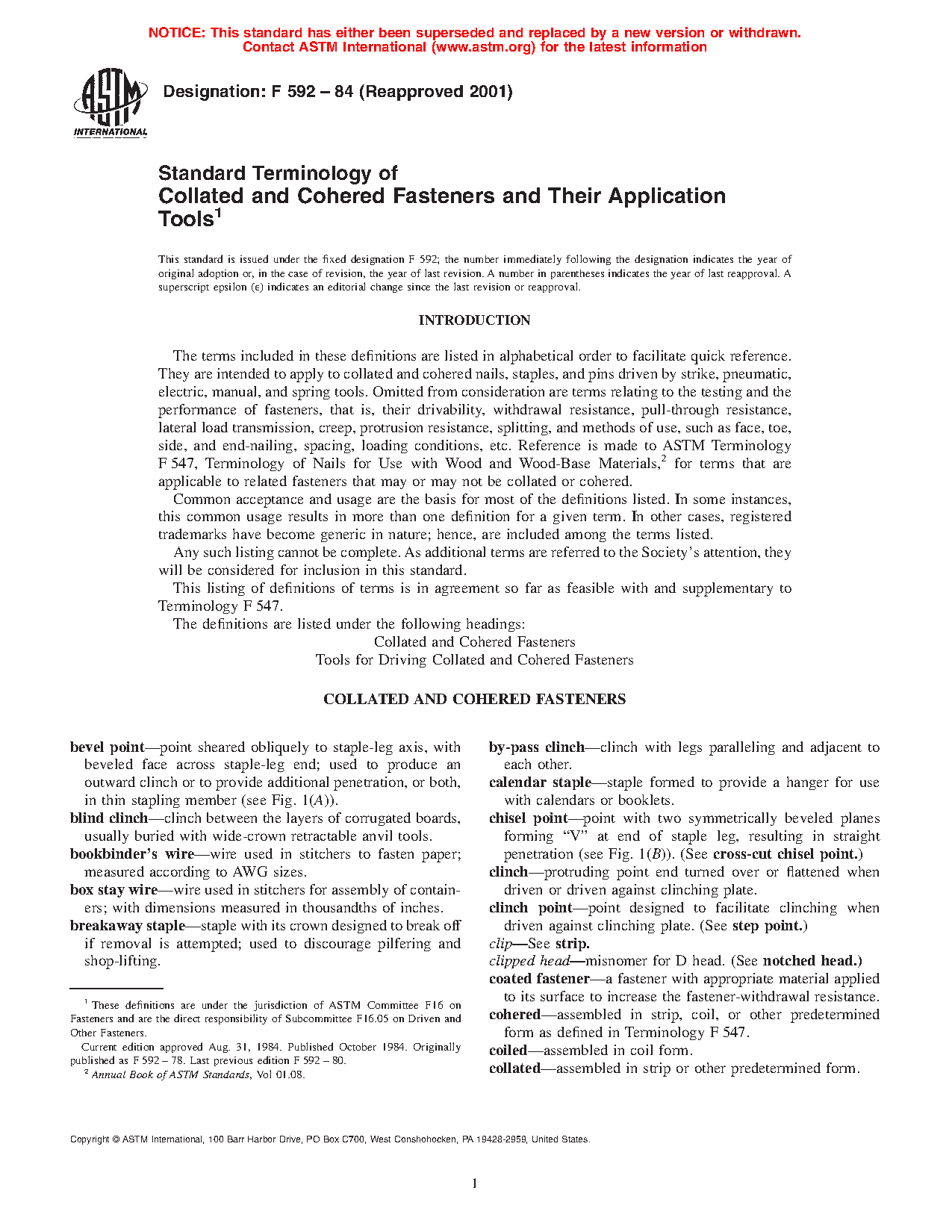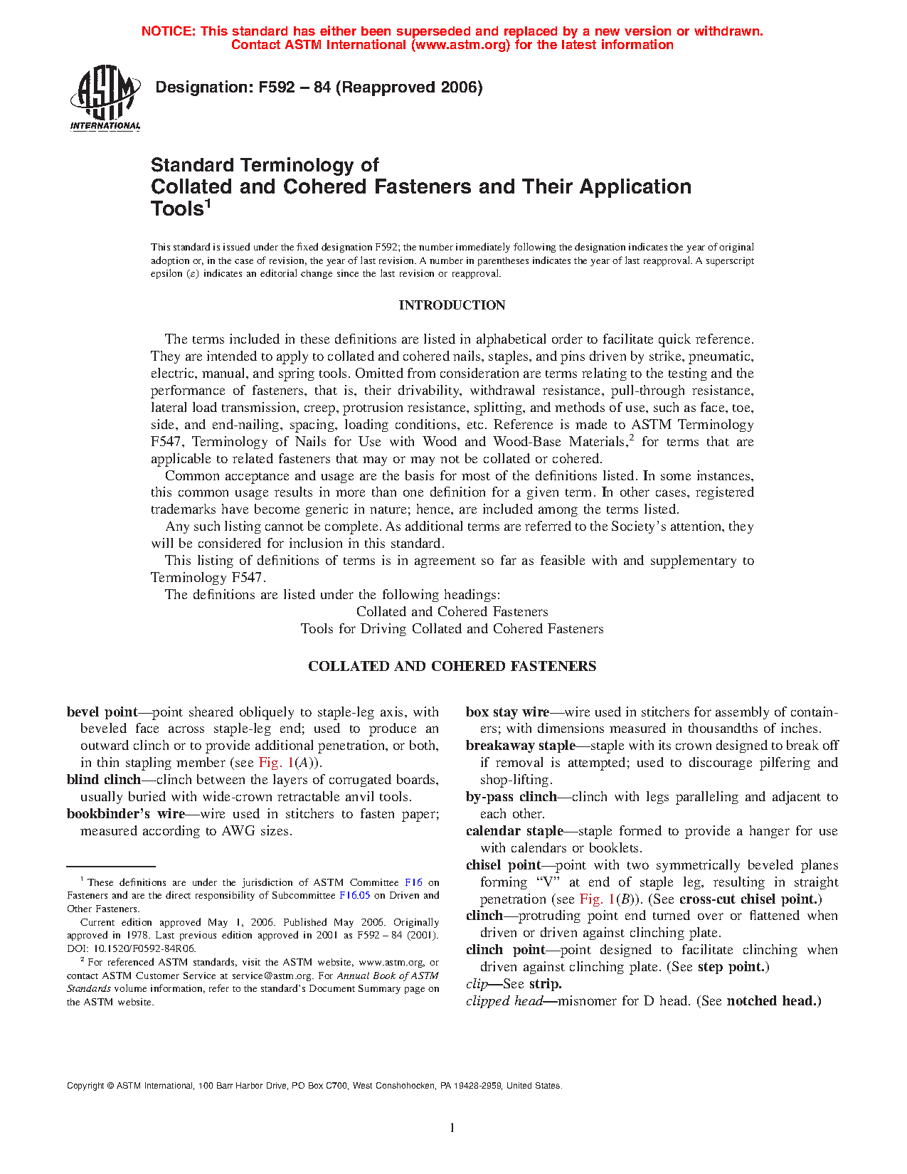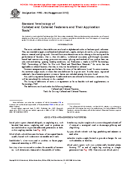 Standard Terminology of Collated and Cohered Fasteners and Their Application Tools (Withdrawn 2017)