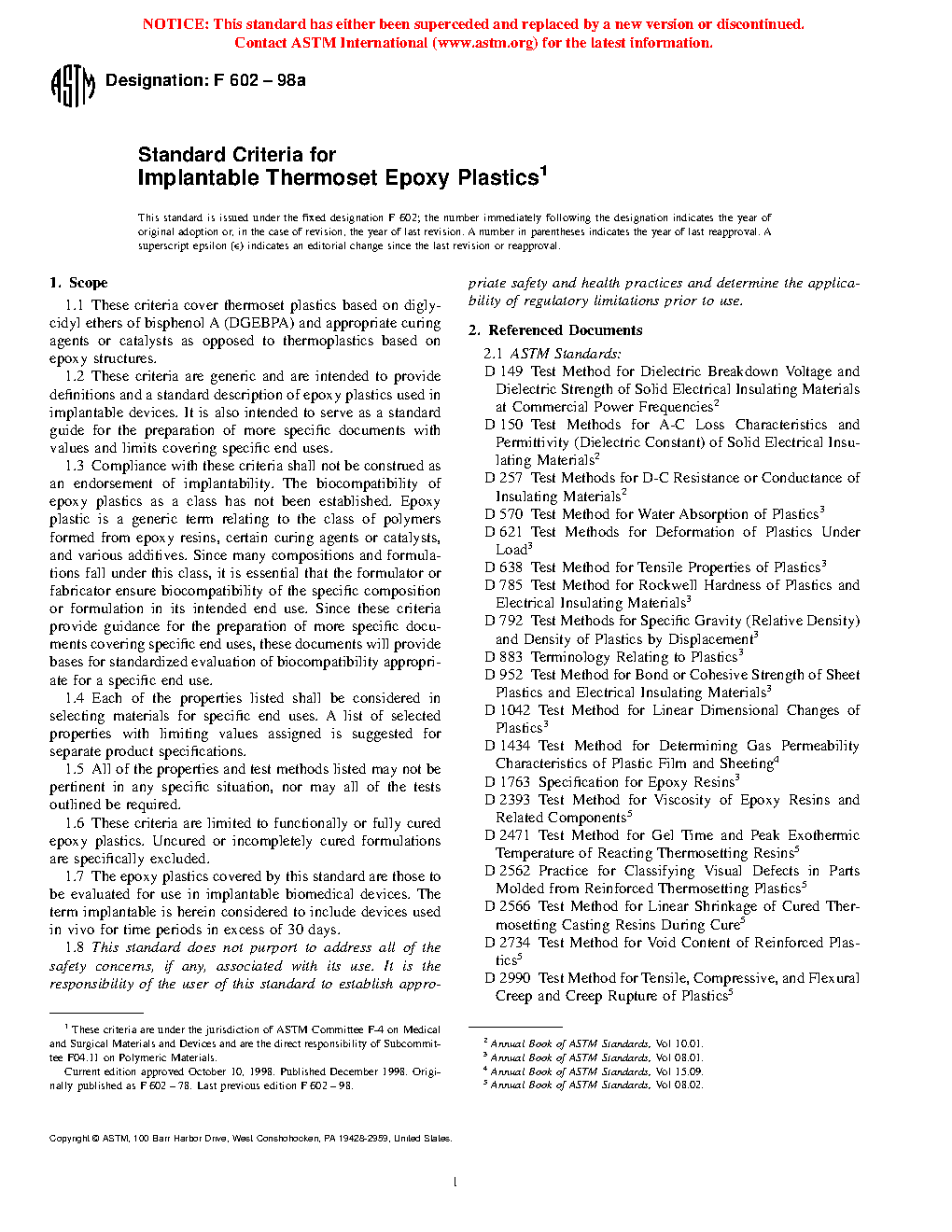 1.2 These criteria are generic and are intended to provide definitions and a standard description of epoxy plastics used in implantable devices. It is also intended to serve as a standard guide for the preparation of more specific documents with values and limits covering specific end uses.