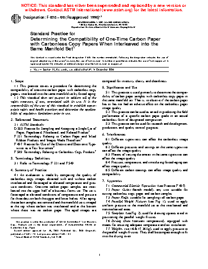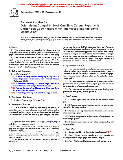Standard Practice for Determining the Compatibility of One-Time Carbon Paper with Carbonless Copy Papers When Interleaved into the Same Manifold Set