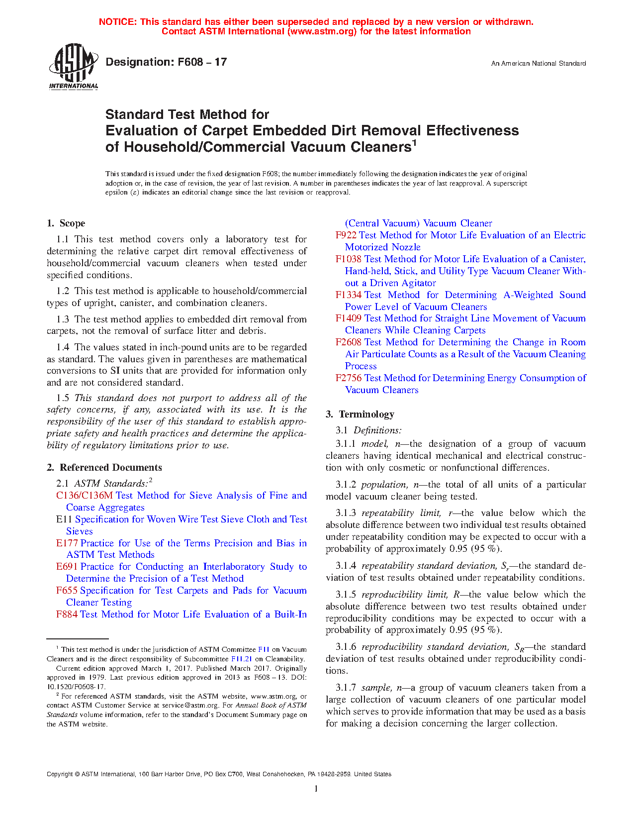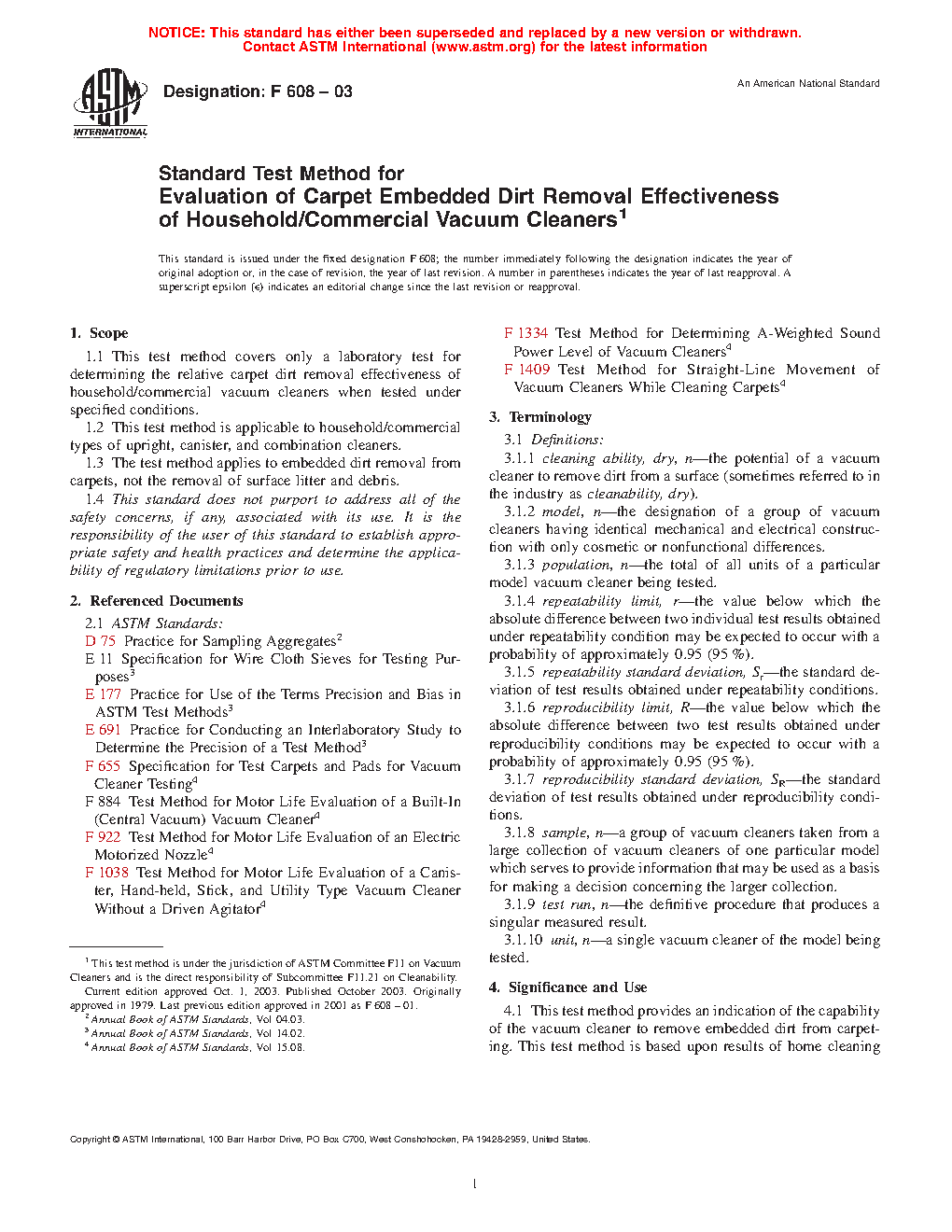 1.3 The test method applies to embedded dirt removal from carpets, not the removal of surface litter and debris.