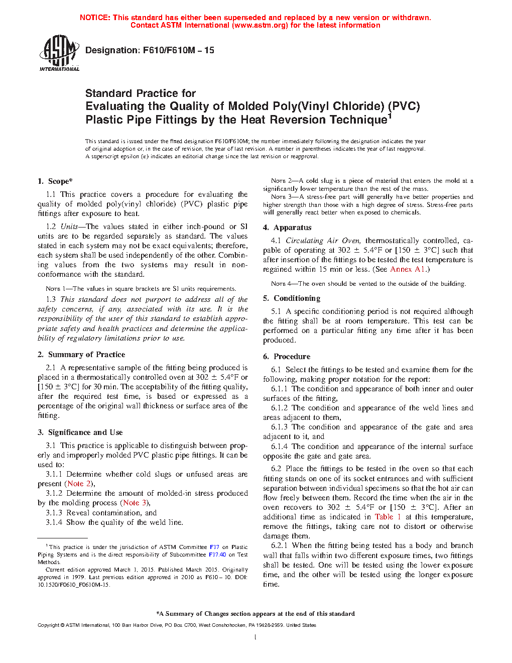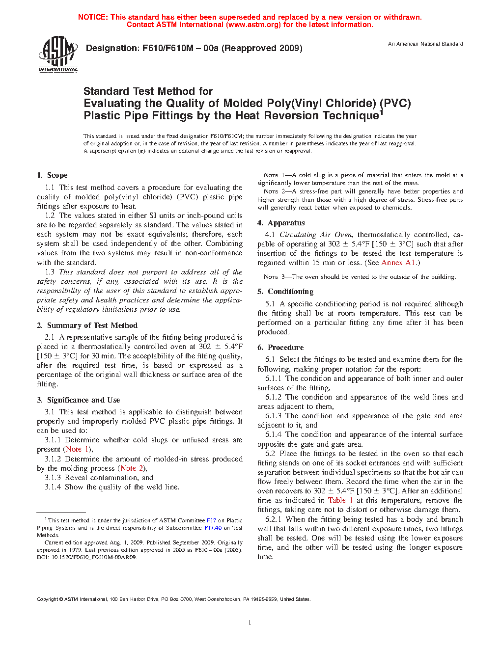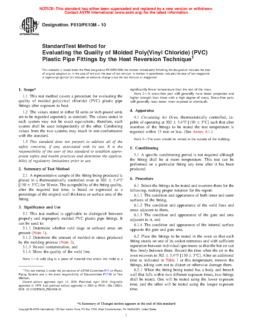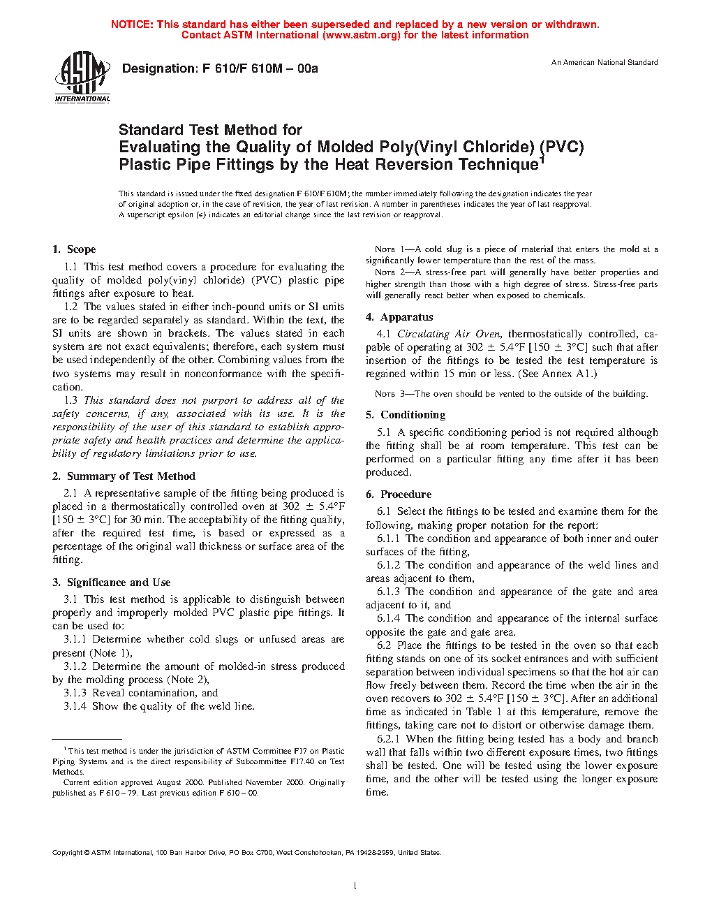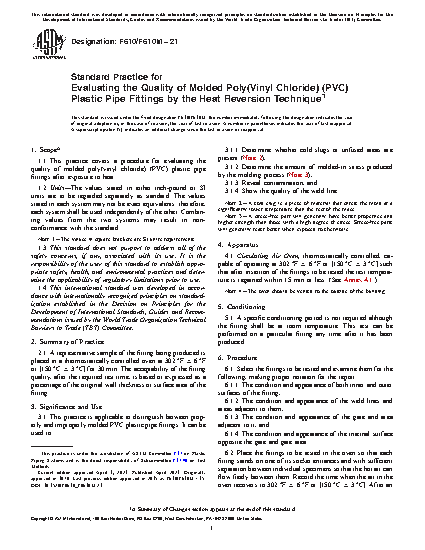 This test method is applicable to distinguish between properly and improperly molded PVC plastic pipe fittings. It can be used to: