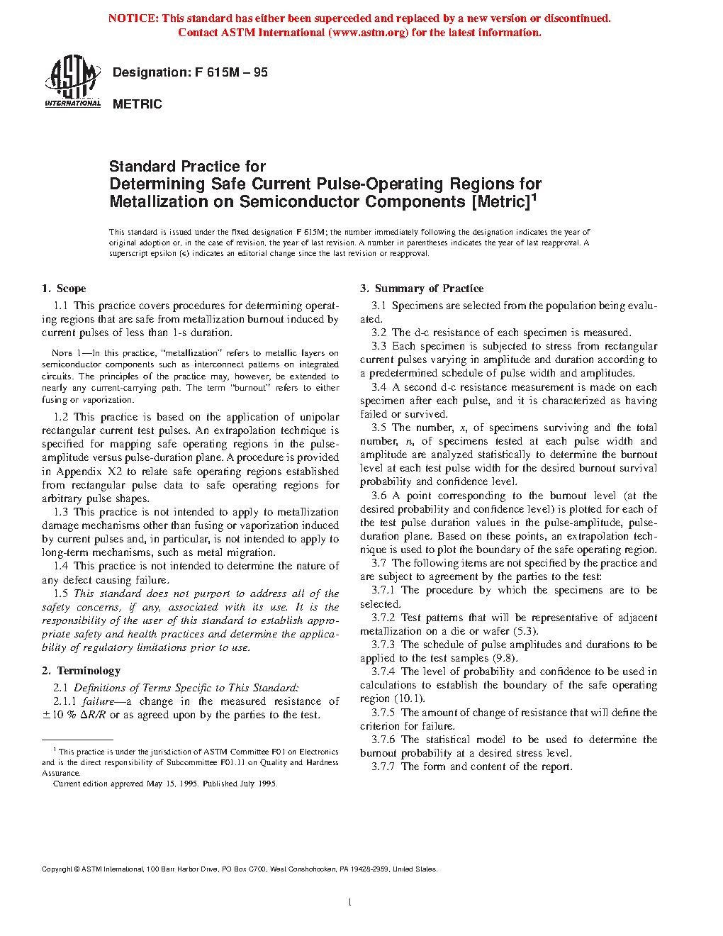 1.3 This practice is not intended to apply to metallization damage mechanisms other than fusing or vaporization induced by current pulses and, in particular, is not intended to apply to long-term mechanisms, such as metal migration.