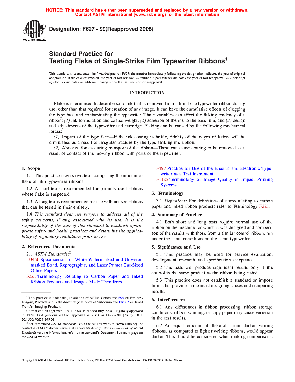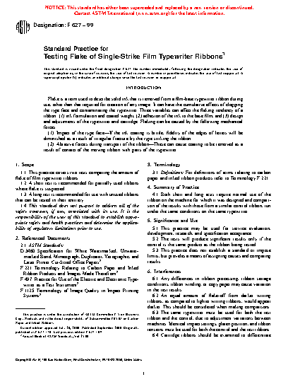 1.1 This practice covers two tests comparing the amount of flake of film typewriter ribbons.