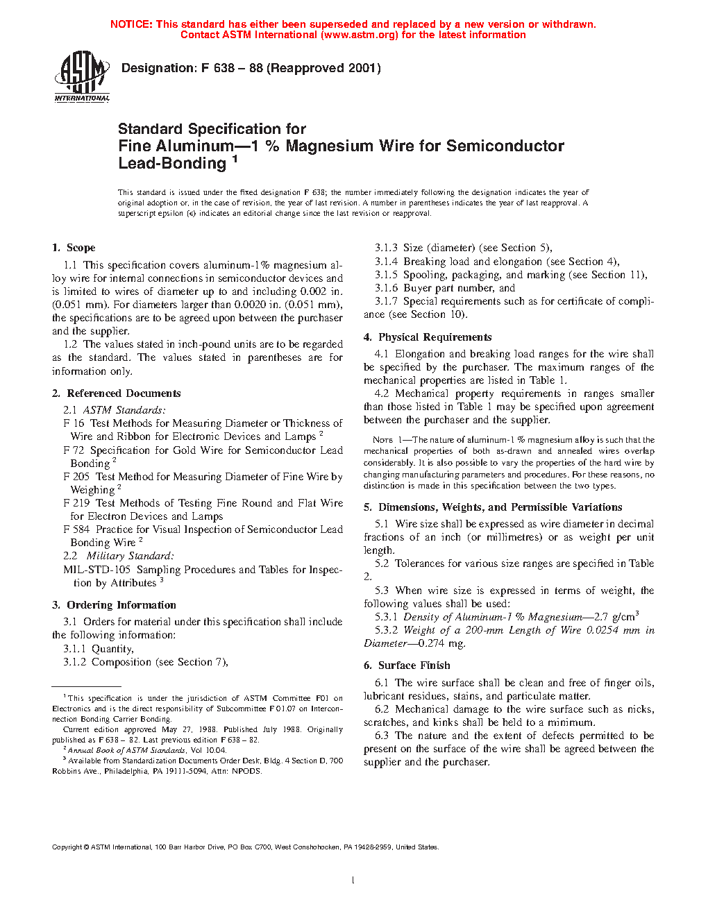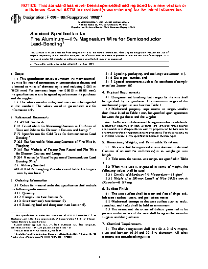 Standard Specification for Fine Aluminum-1% Magnesium Wire for Semiconductor Lead-Bonding