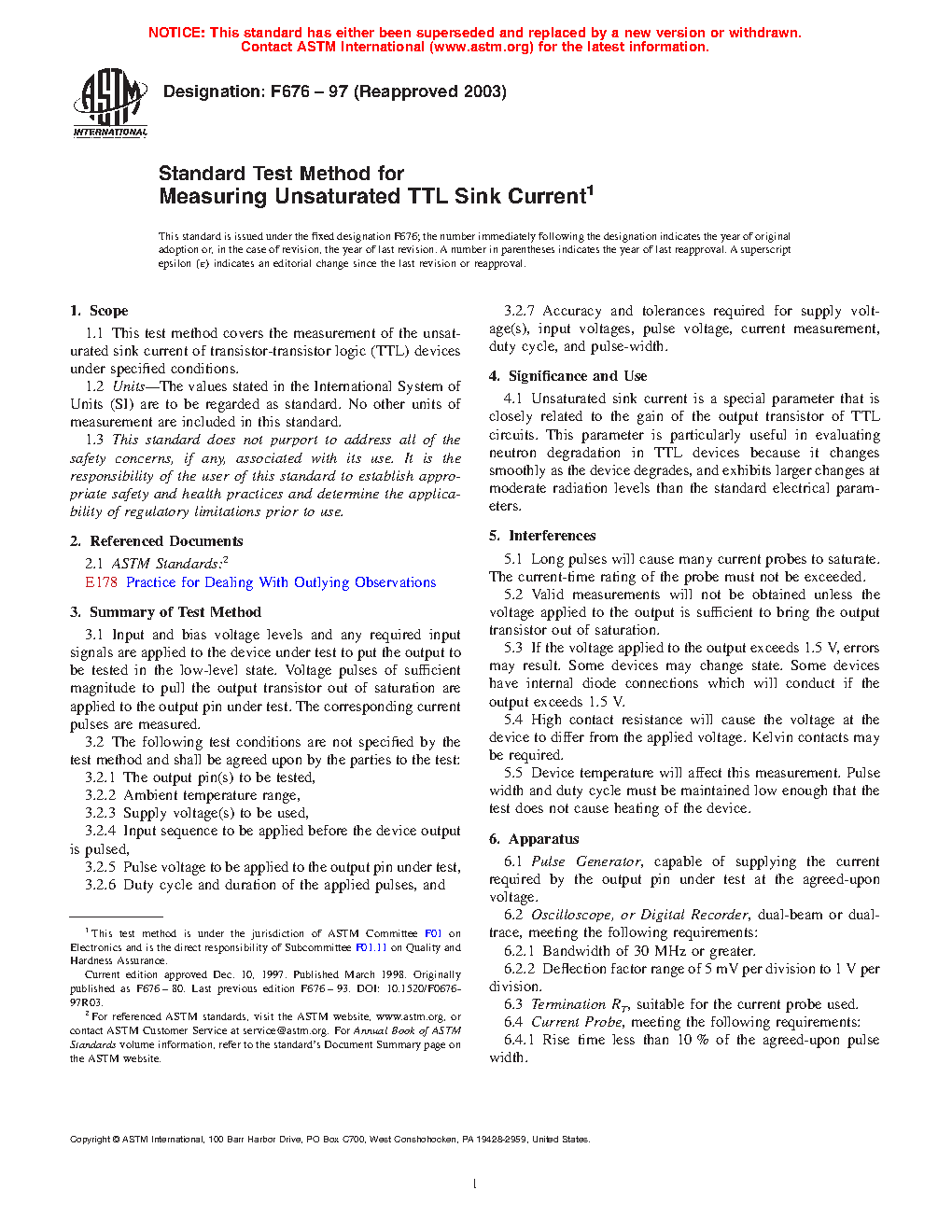 1.1 This test method covers the measurement of the unsaturated sink current of transistor-transistor logic (TTL) devices under specified conditions.