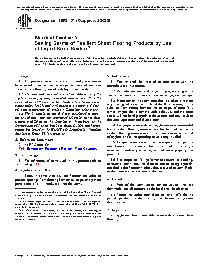 Standard Practice for Sealing Seams of Resilient Sheet Flooring Products by Use of Liquid Seam Sealers