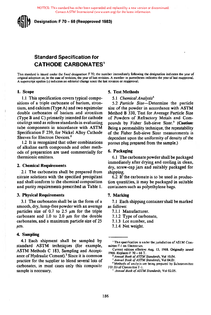 Specification for Cathode Carbonates (Withdrawn 1989)