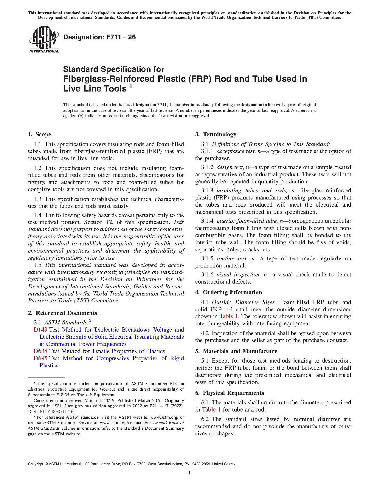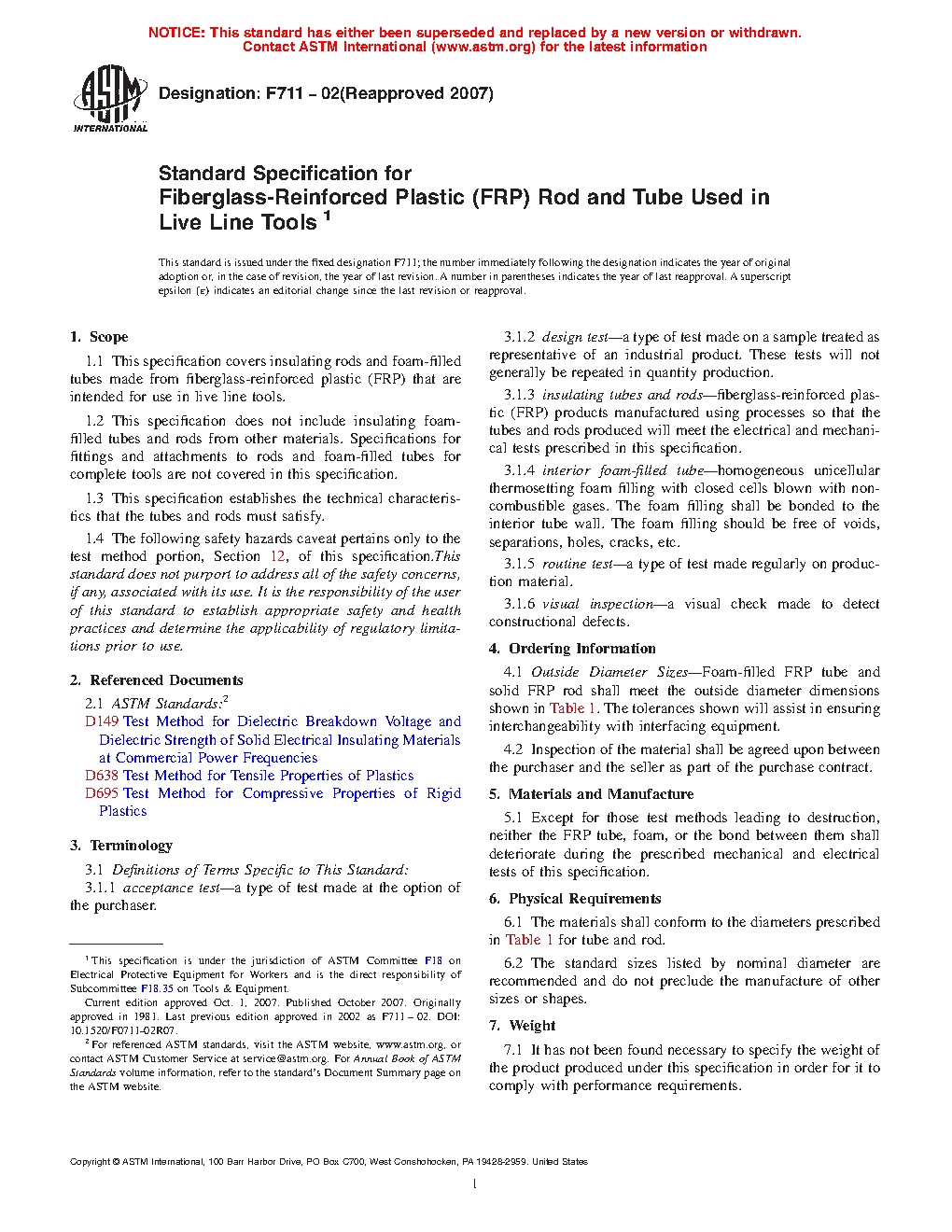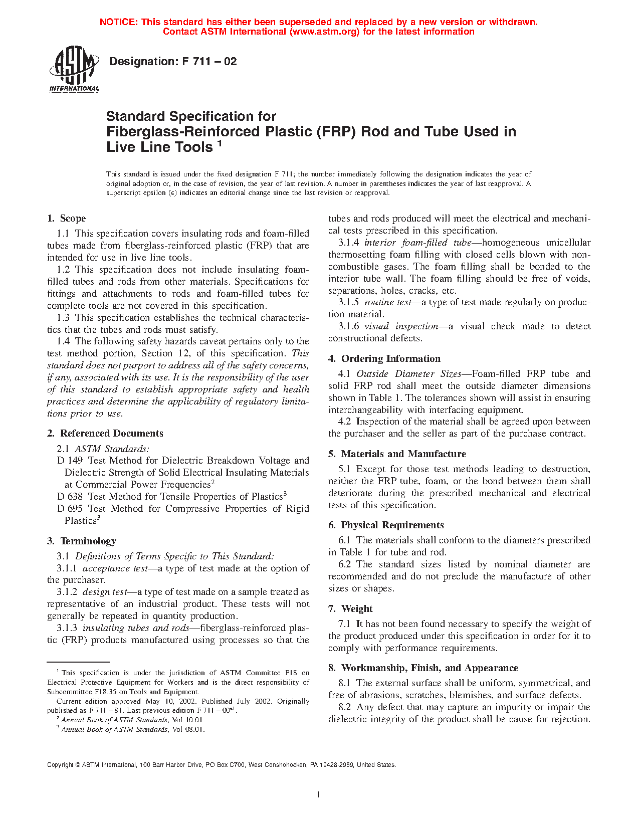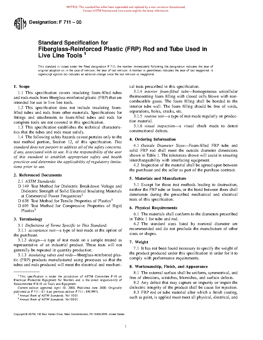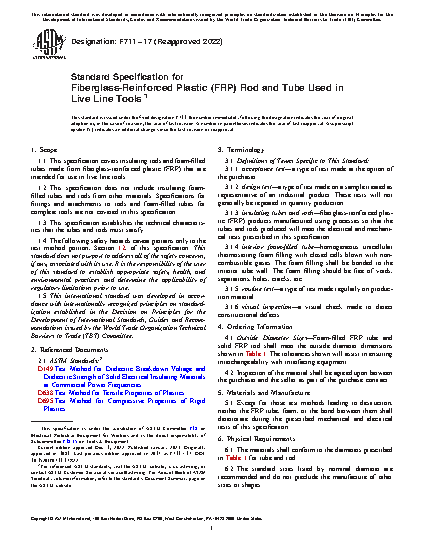 Standard Specification for Fiberglass-Reinforced Plastic (FRP) Rod and Tube Used in Live Line Tools