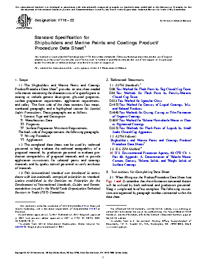 The Shipbuilders and Marine Paints and Coatings Product/Procedure Data Sheet2 provides on one sheet needed information concerning the characteristics of a specific paint or coating to include generic description, physical properties, surface preparation requirements, application requirements, and safety. When filling out the Product/Procedure Data Sheet remember that the information contained therein will be utilized by both technical and production personnel. The completed data sheets can be used by technical personnel to help evaluate the technical acceptability of a proposed material, by production personnel to evaluate production compatibility of proposed materials and to provide application instructions for selected paints and coatings materials, and by quality control personnel to verify attributes of materials.