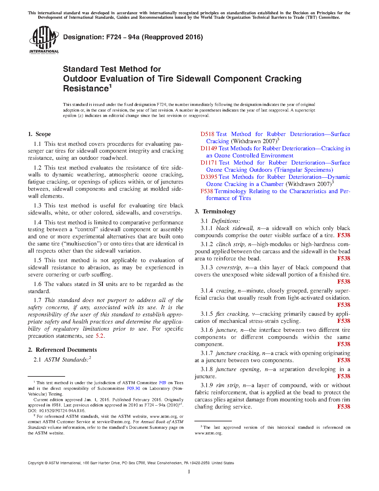 1.2 This test method evaluates the resistance of tire sidewalls to dynamic weathering, atmospheric ozone cracking, fatigue cracking, or openings of splices within, or of junctures between sidewall components and cracking at molded sidewall elements.