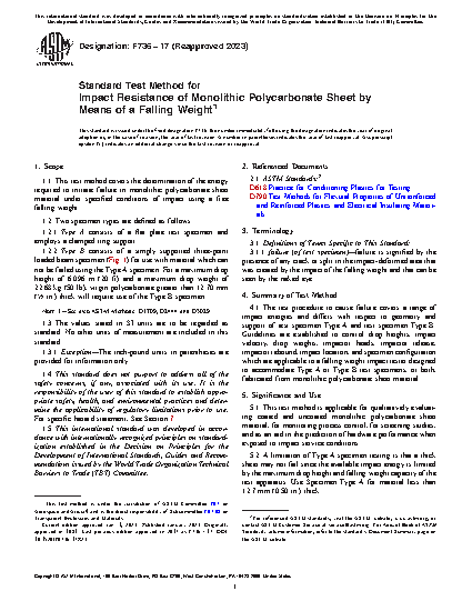 1.1 This test method covers the determination of the energy required to initiate failure in monolithic polycarbonate sheet material under specified conditions of impact using a free falling weight.