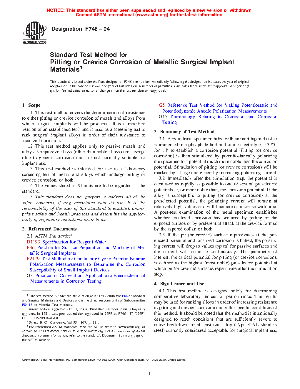 1.3 This test method is intended for use as a laboratory screening test for metals and alloys which undergo pitting or crevice corrosion, or both.