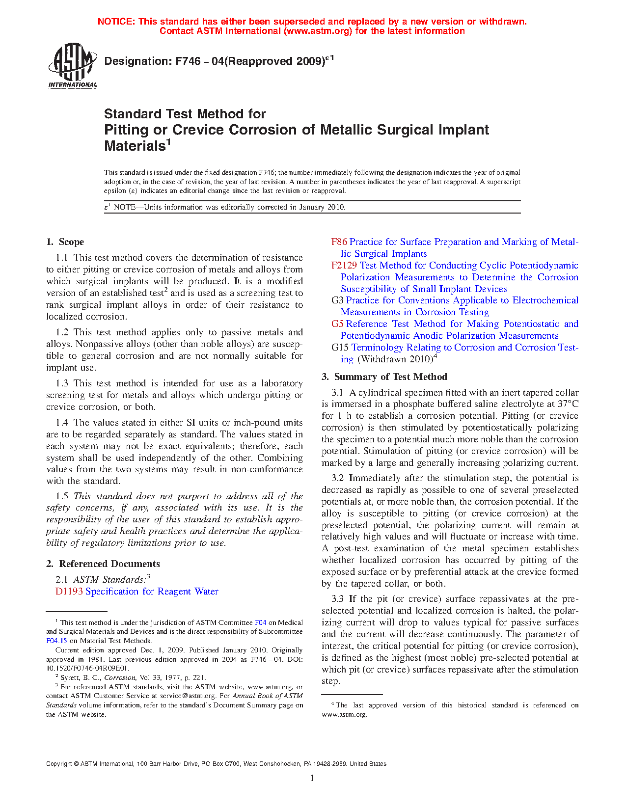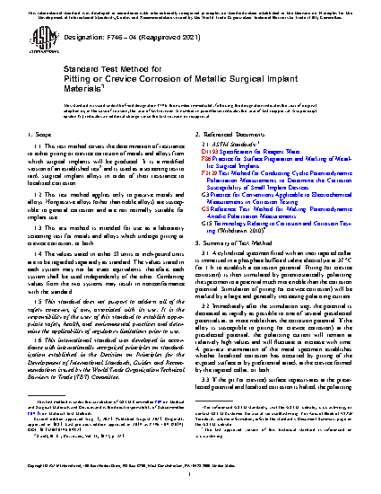 1.2 This test method applies only to passive metals and alloys. Nonpassive alloys (other than noble alloys) are susceptible to general corrosion and are not normally suitable for implant use.