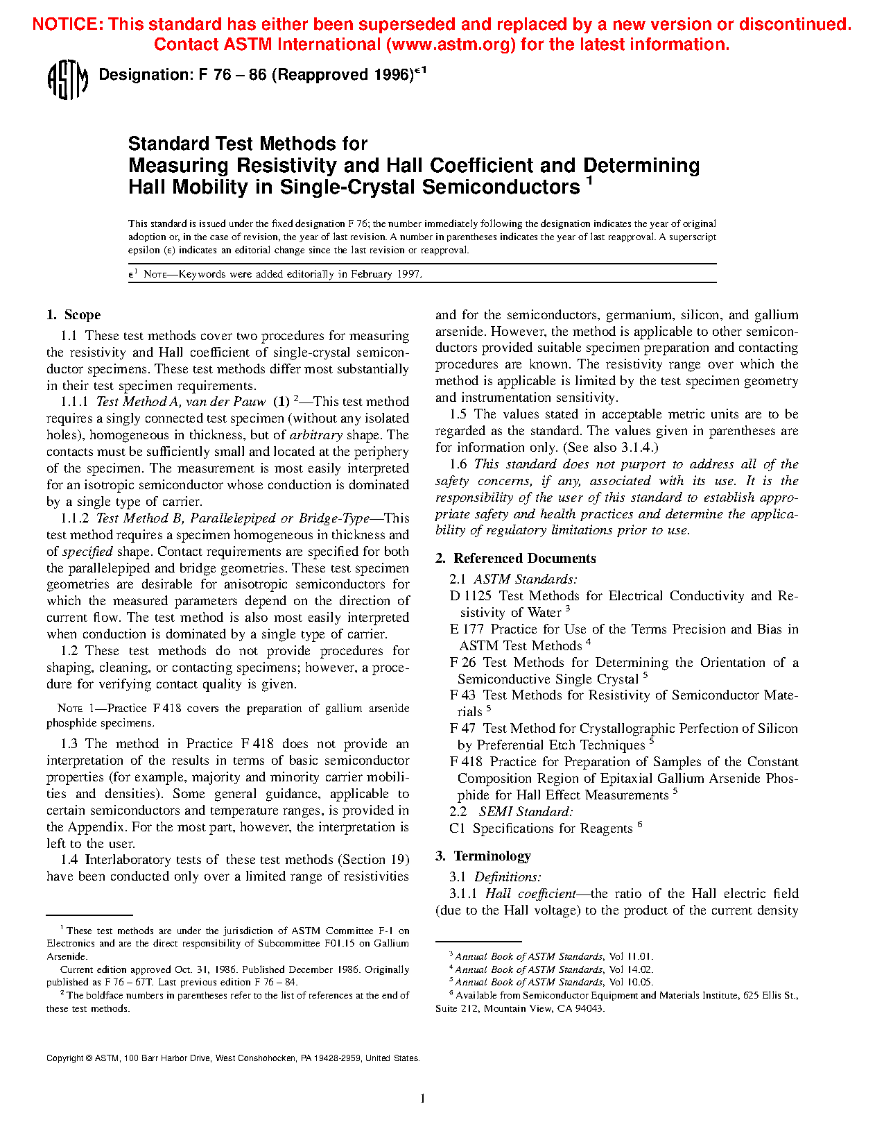 1.3 The method in Practice F418 does not provide an interpretation of the results in terms of basic semiconductor properties (for example, majority and minority carrier mobilities and densities). Some general guidance, applicable to certain semiconductors and temperature ranges, is provided in the Appendix. For the most part, however, the interpretation is left to the user.