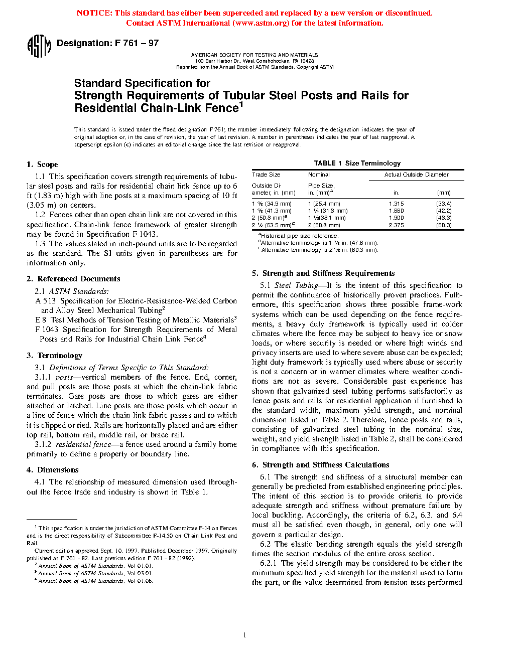 1.2 Fences other than open chain link are not covered in this specification. Chain-link fence framework of greater strength may be found in Specification F 1043.