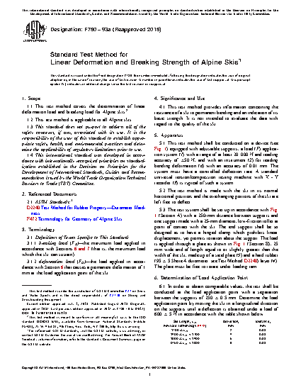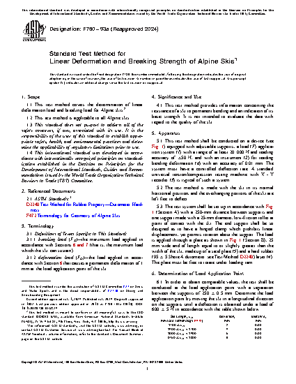 1.1 This test method covers the determination of linear deformation load and breaking load for Alpine skis.2