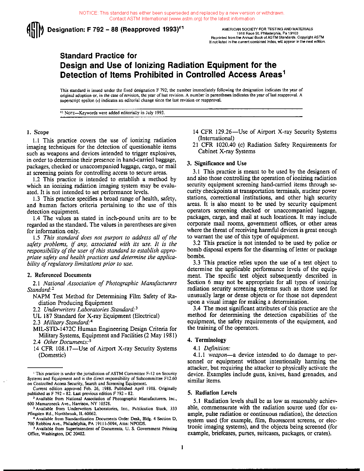 This practice is intended for use at both the point of manufacture and where the system is operated. The latter includes locations such as security checkpoints of transportation terminals, nuclear power stations, correctional institutions, corporate mailrooms, government offices and other security areas.