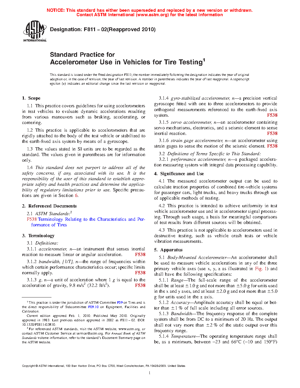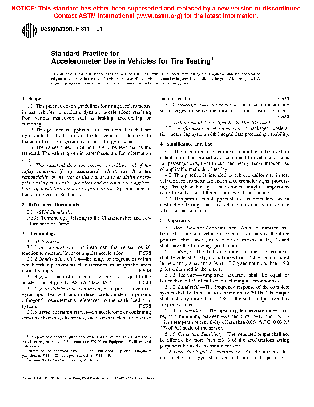 4.3 This practice is not applicable to accelerometers used in destructive testing, such as vehicle crash tests or vehicle vibration measurements.