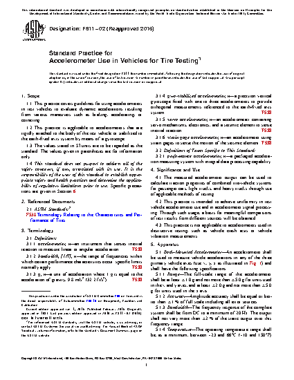 1.1 This practice covers guidelines for using accelerometers in test vehicles to evaluate dynamic accelerations resulting from various maneuvers such as braking, accelerating, or cornering.