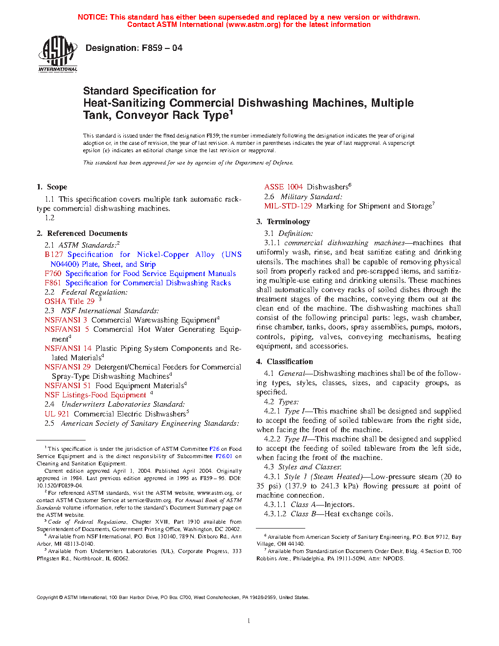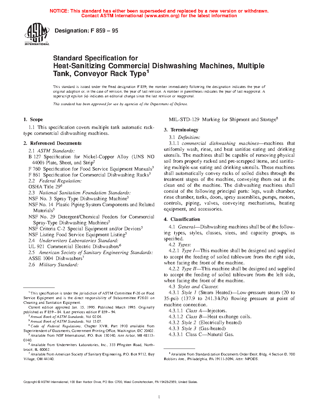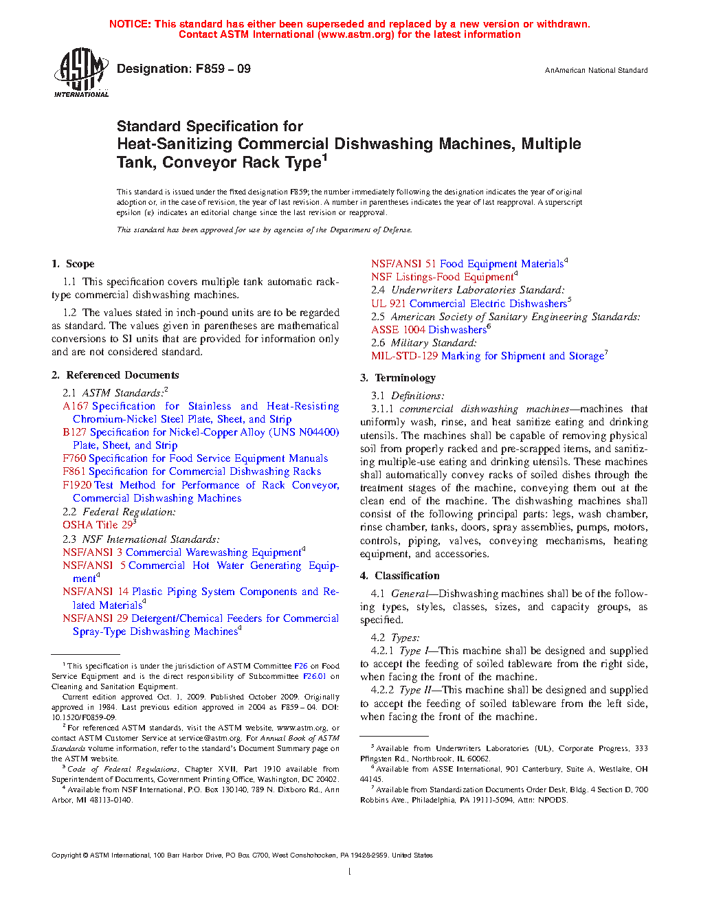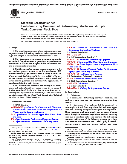 1.1 This specification covers multiple tank automatic rack-type commercial dishwashing machines, including continuous type, oval shaped, with horizontal table conveyor systems.