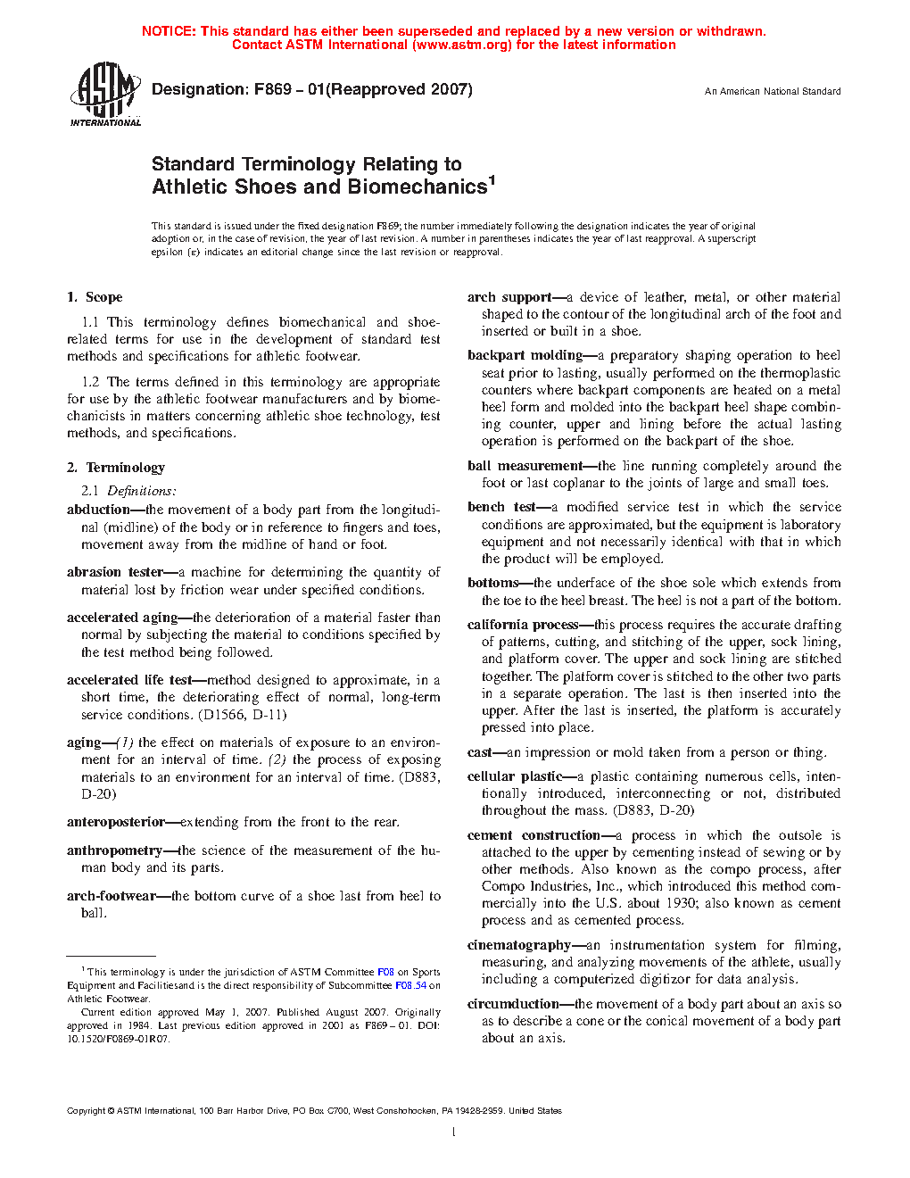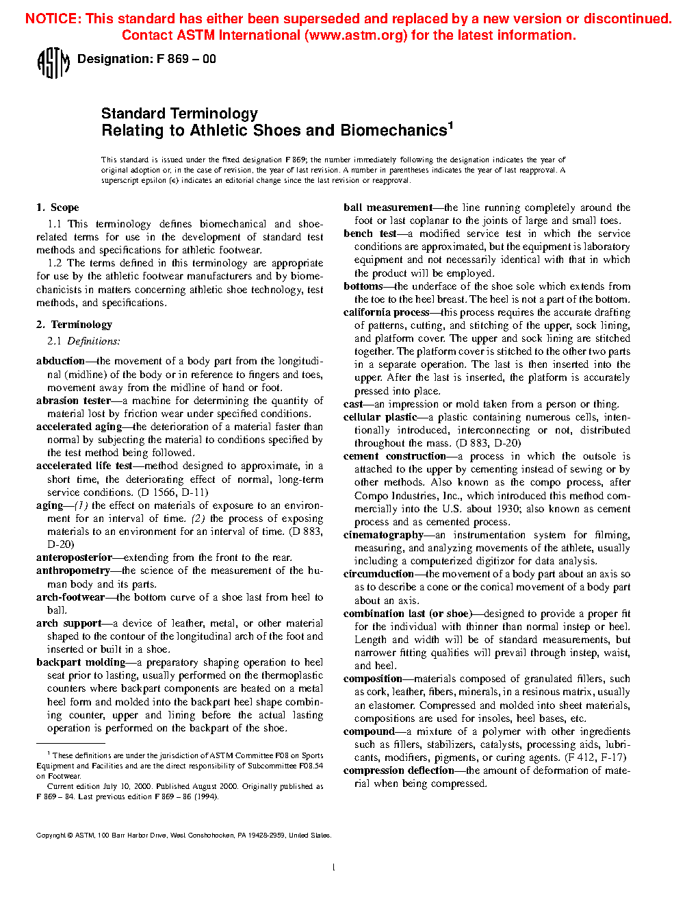 1.2 The terms defined in this terminology are appropriate for use by the athletic footwear manufacturers and by biomechanicists in matters concerning athletic shoe technology, test methods, and specifications.