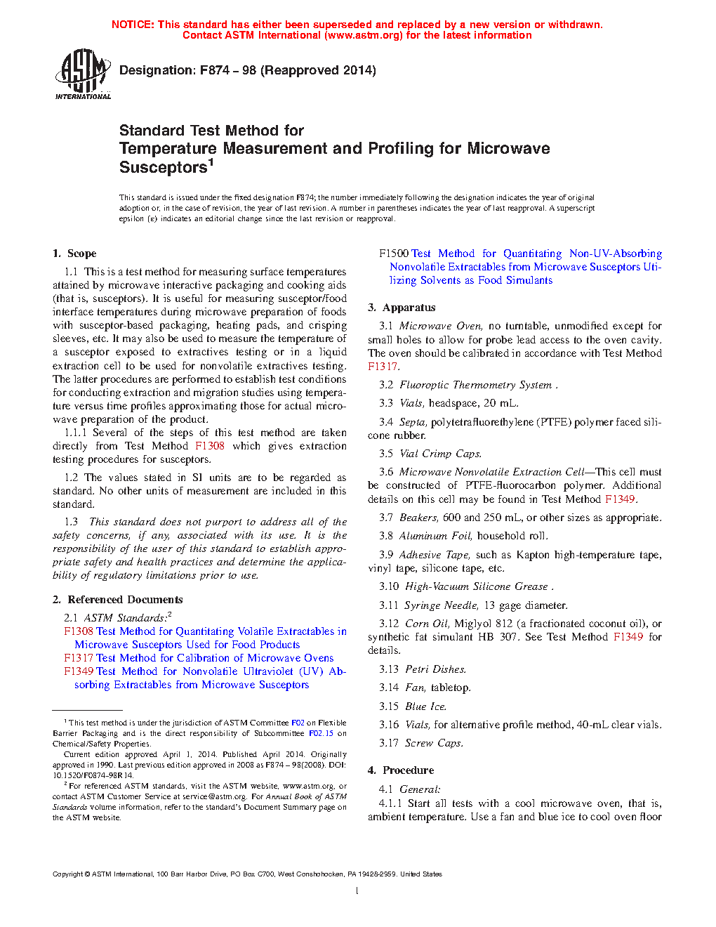 1.1.1 Several of the steps of this test method are taken directly from Test Method F1308 which gives extraction testing procedures for susceptors.