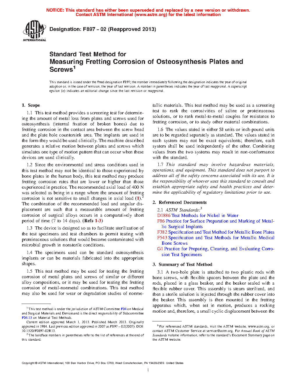 1.4 The specimens used can be standard osteosynthesis implants or can be materials fabricated into the appropriate shapes.