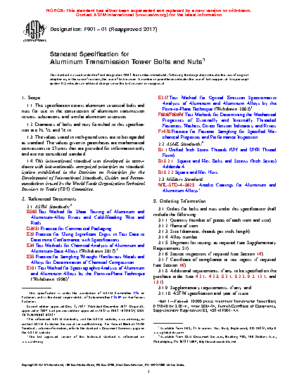 1.1 This specification covers aluminum structural bolts and nuts for use in the construction of aluminum transmission towers, substations, and similar aluminum structures.