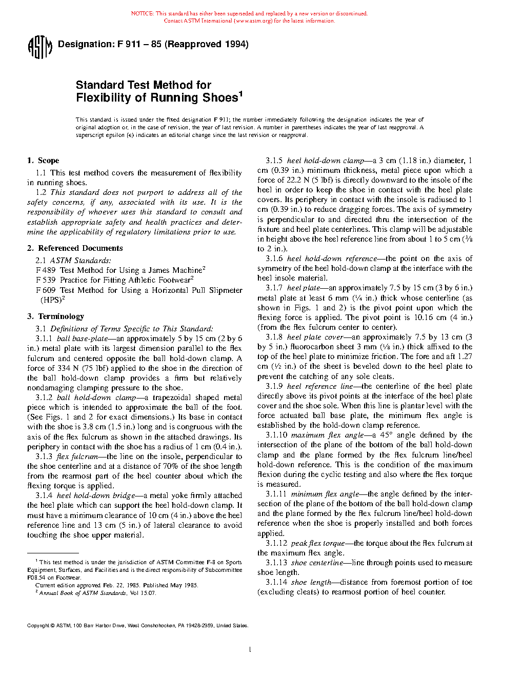 Standard Test Method for Flexibility of Running Shoes (Withdrawn 2002)