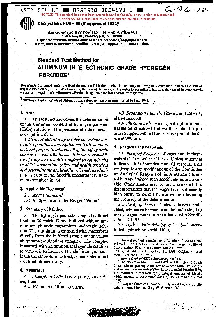 Method of Test for Aluminum in Electronic Grade Hydrogen Peroxide