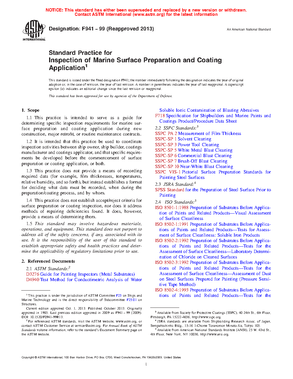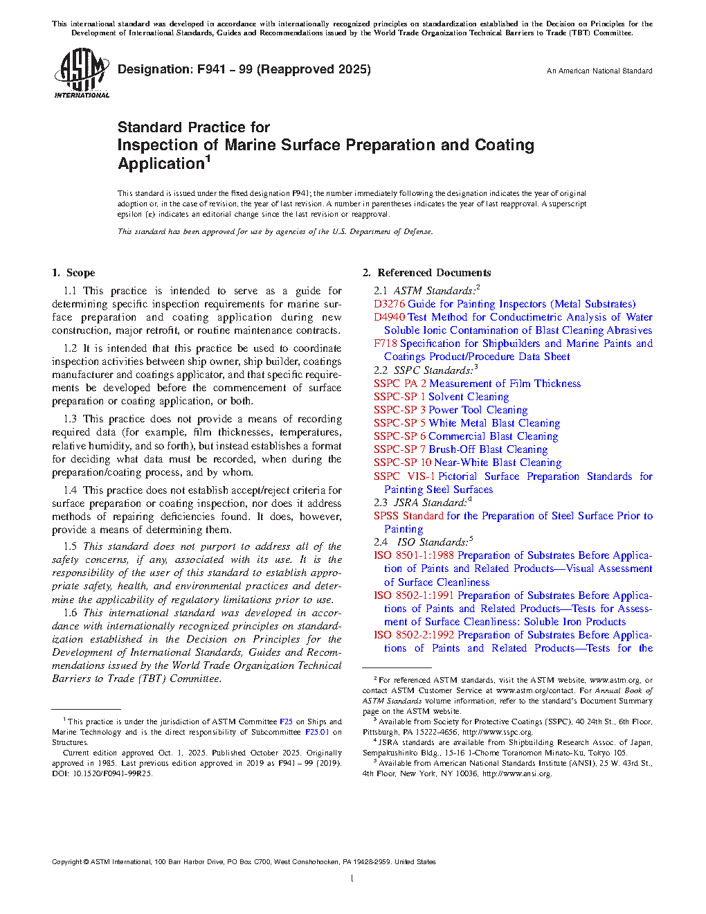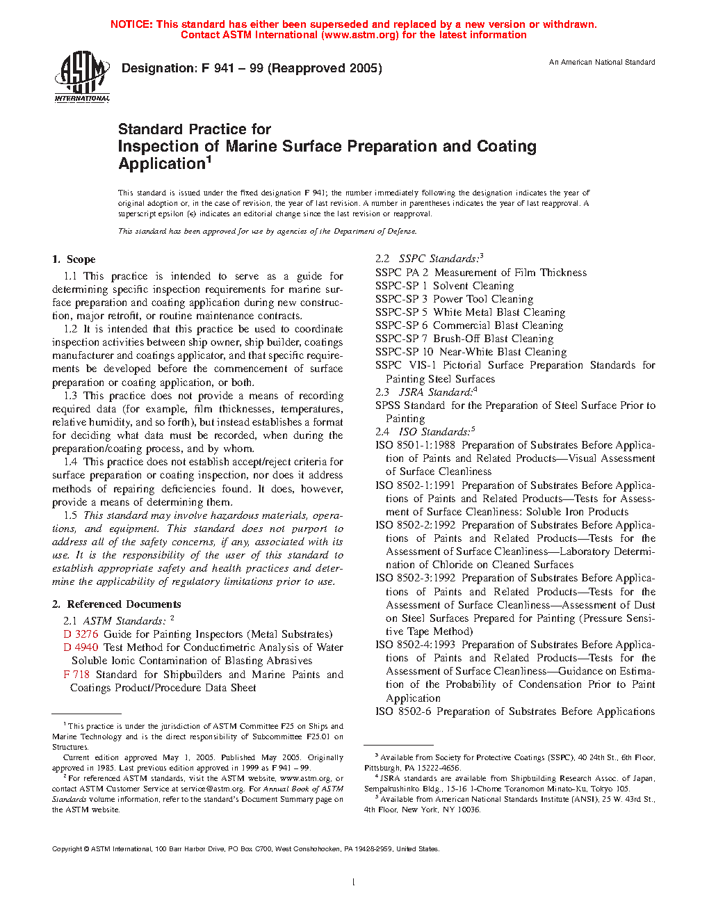 1.1 This practice is intended to serve as a guide for determining specific inspection requirements for marine surface preparation and coating application during new construction, major retrofit, or routine maintenance contracts.
