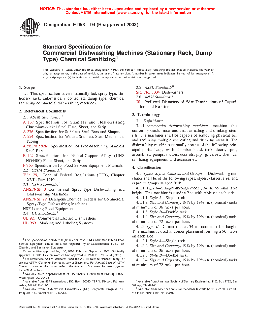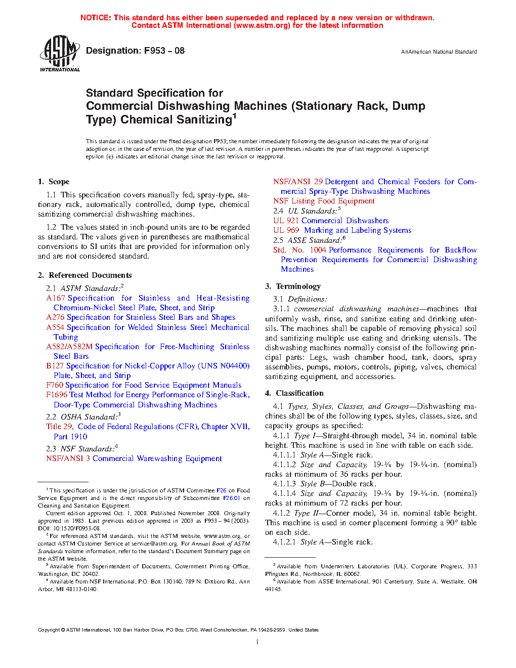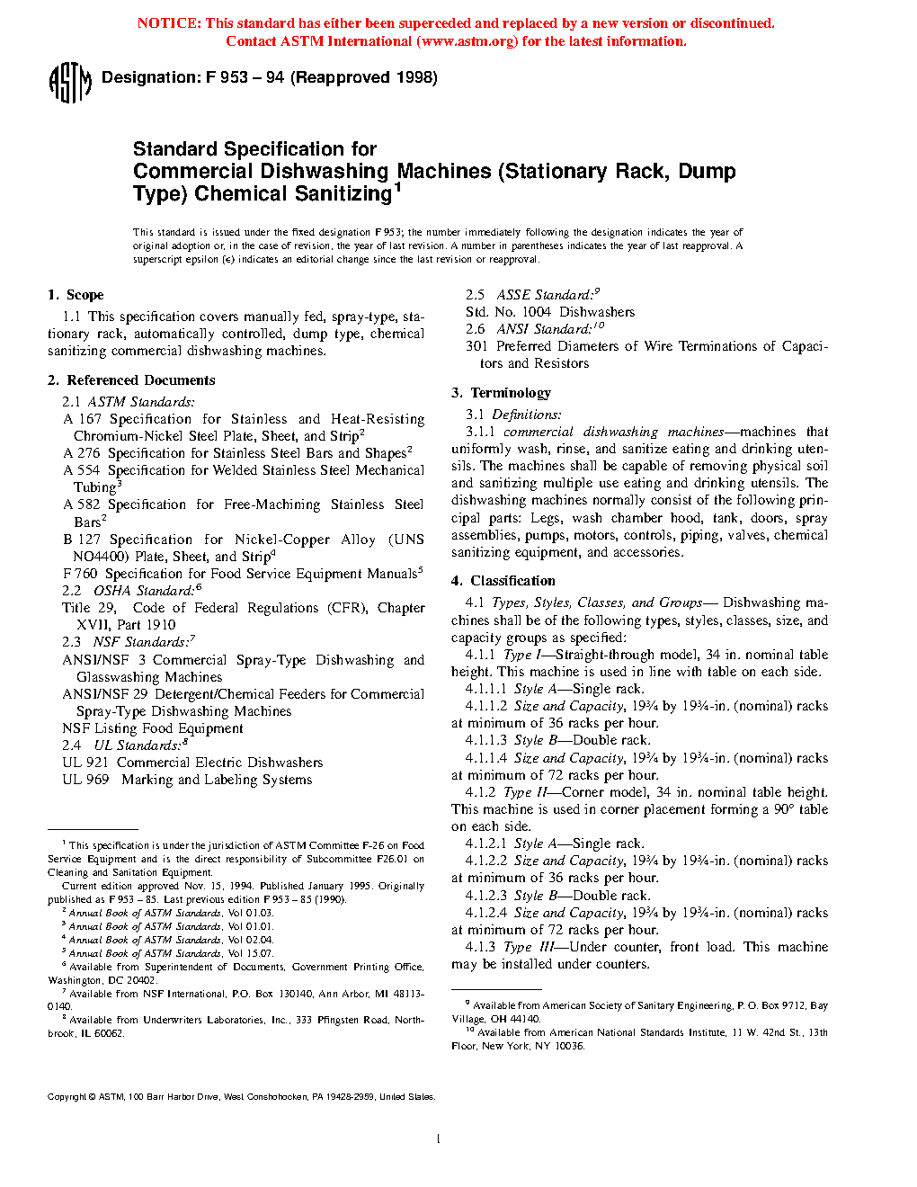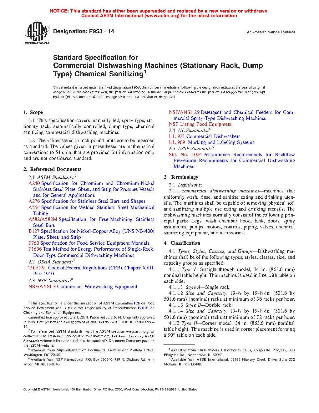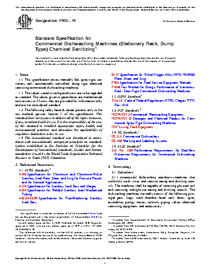 1.1 This specification covers manually fed, spray-type, stationary rack, automatically controlled, dump type, chemical sanitizing commercial dishwashing machines.